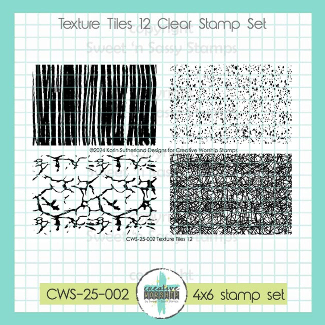This stamp set features 4 texture-patterned clear stamps, and measures approximately 4 x 6 inches. It was designed by renowned artist Korin Sutherland and proudly made in the USA.