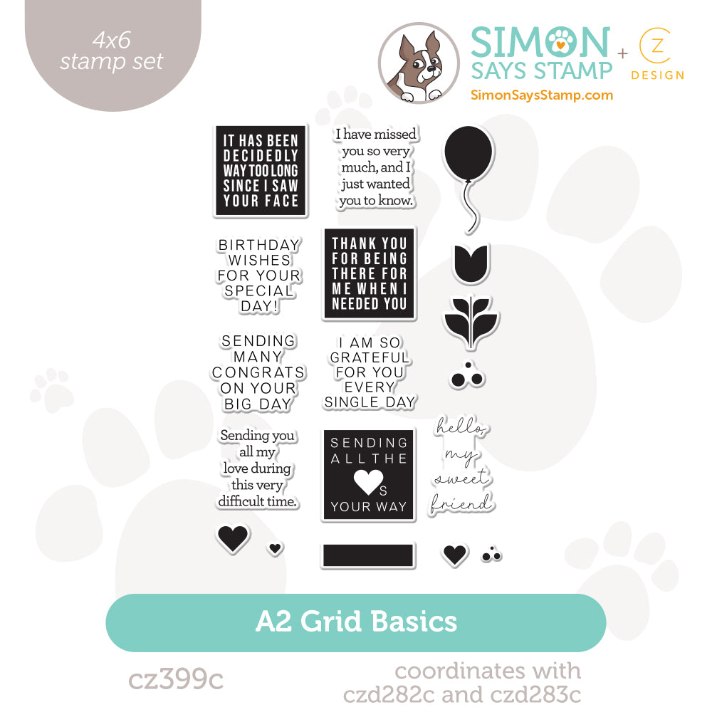Perfect for card fronts, tags, or modern scrapbook layouts, the A2 Grid Basics set brings graphic CZ style and endless versatility to your crafting. CZ Design products are available exclusively from Simon Says Stamp.