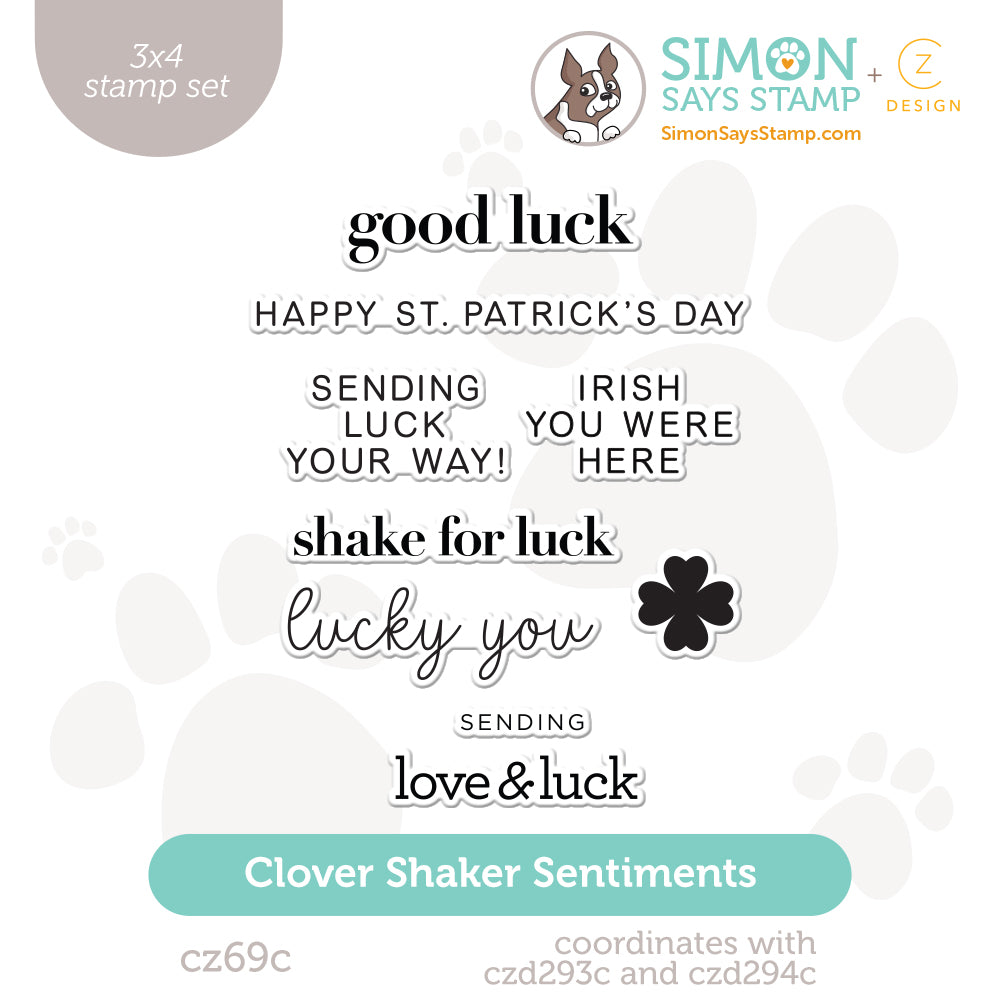 The CZ Design Clover Shaker Sentiments stamp set features a collection of festive phrases perfect for St. Patrick’s Day and beyond. Designed to pair beautifully with the Clover Shaker die, these sentiments add a playful and celebratory touch to cards, tags, and paper crafts. A graphic four-leaf clover image accompanies the set.