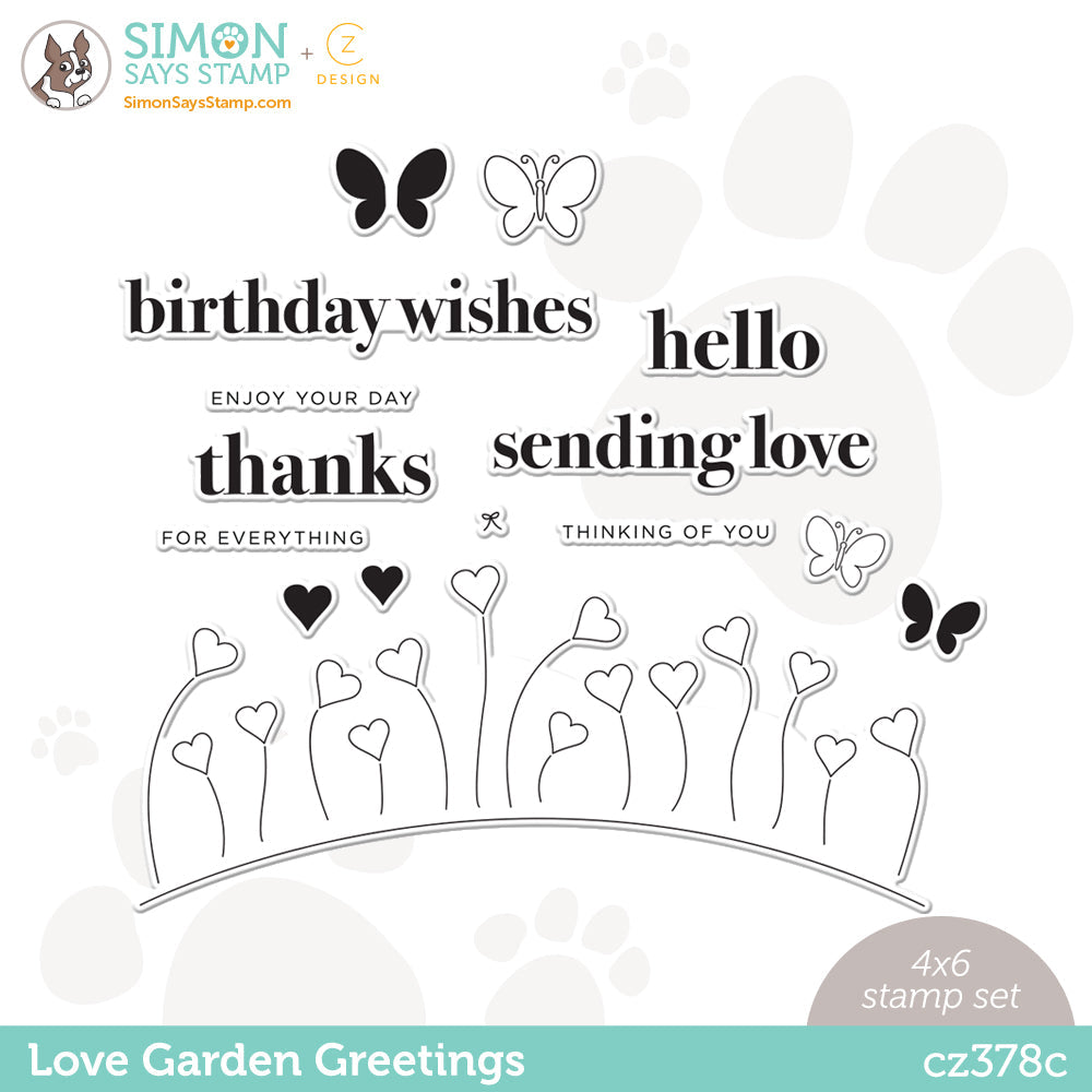 This stamp set measures approximately 4 x 6 inches and has a coordinating die set, Love Garden Greetings (cz378c).