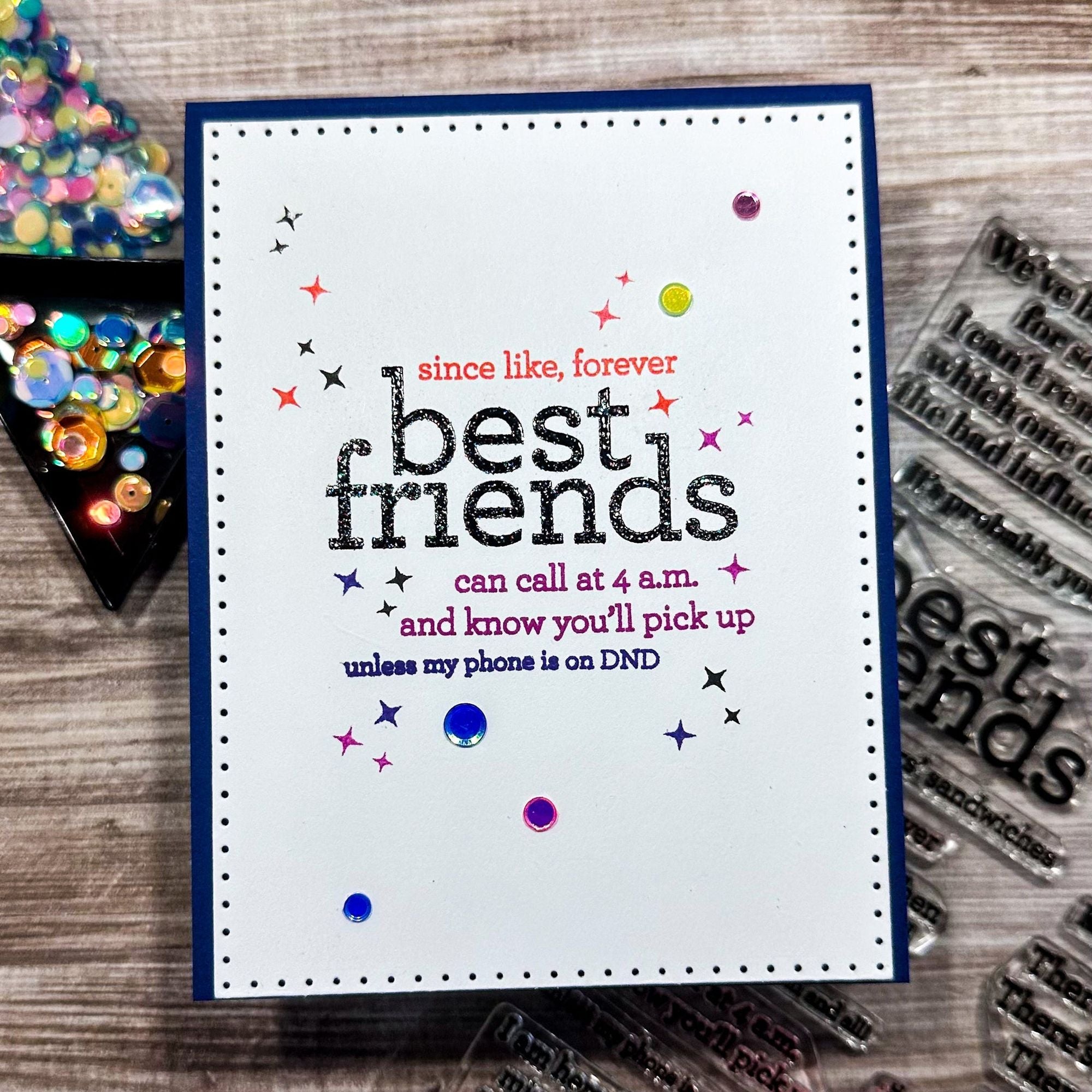 Craft with attitude and authenticity, as these high-quality photopolymer stamps guarantee every sentiment shines through with clarity. Let your creativity run wild and celebrate the fun-filled, one-of-a-kind bond between friends with the Sassy Friends stamp set by Simon Says Stamp.