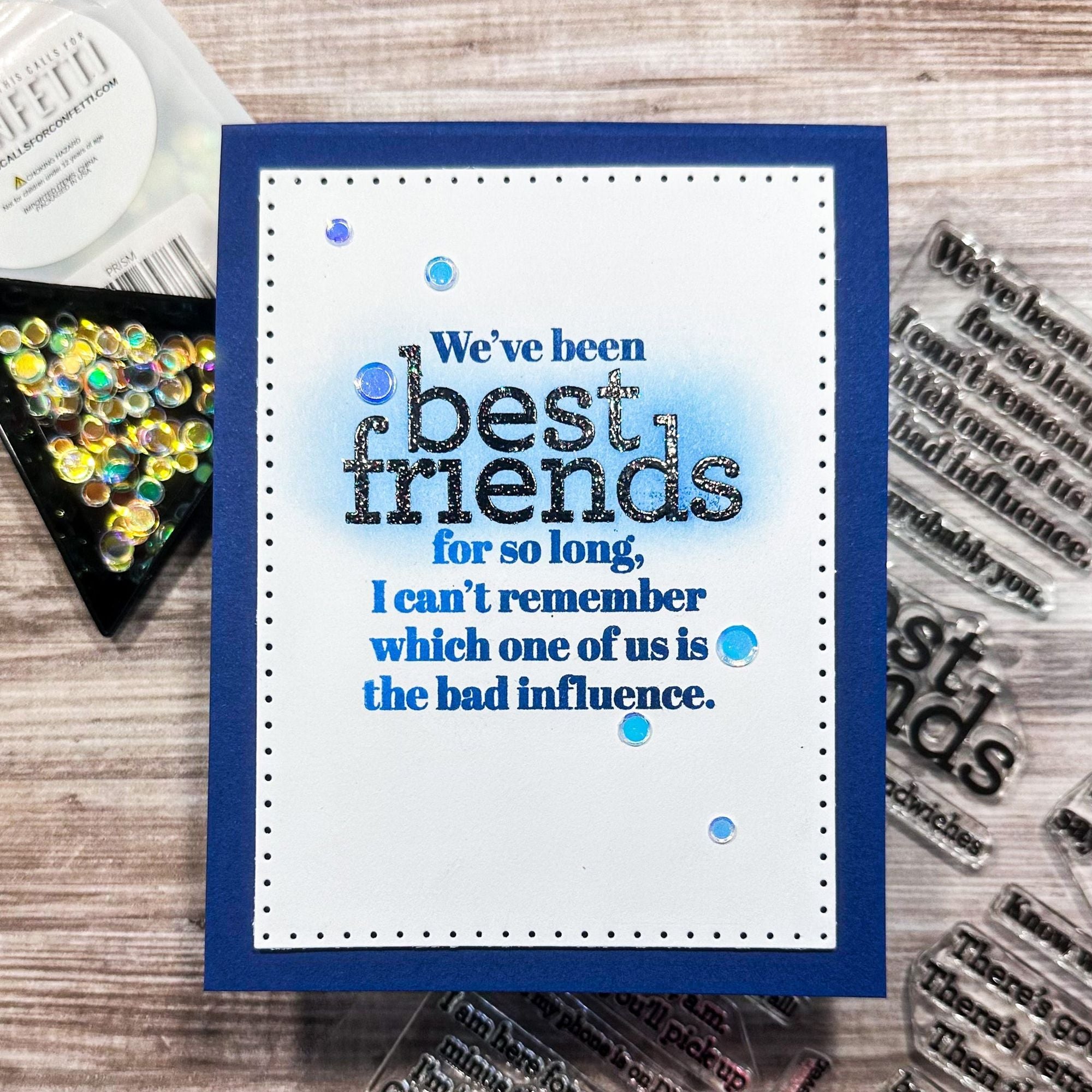 Inject a dose of humor and camaraderie into your crafts with the Simon Says Stamp Sassy Friends stamp set. This set captures the unique banter that only the closest of friends share, infusing your projects with a playful and light-hearted vibe. With a collection of sassy and witty sentiments, you'll find the perfect words to express your friendship in a way that only true pals understand.