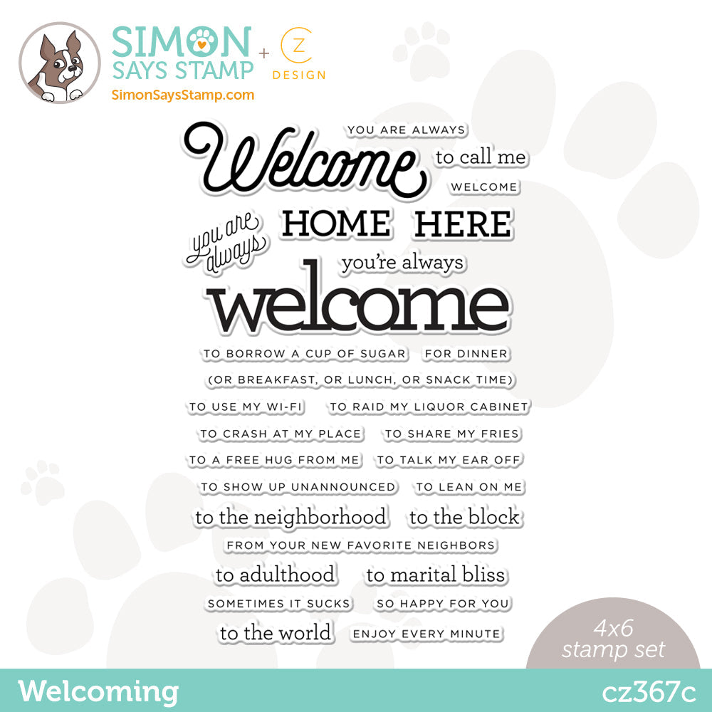 New From the Hello Beautiful Release!CZ Design clear stamps by Cathy Zielske are high quality photopolymer and made in the USA. This stamp set measures approximately 4 x 6 inches and coordinates with the Welcoming die set (czd131c).