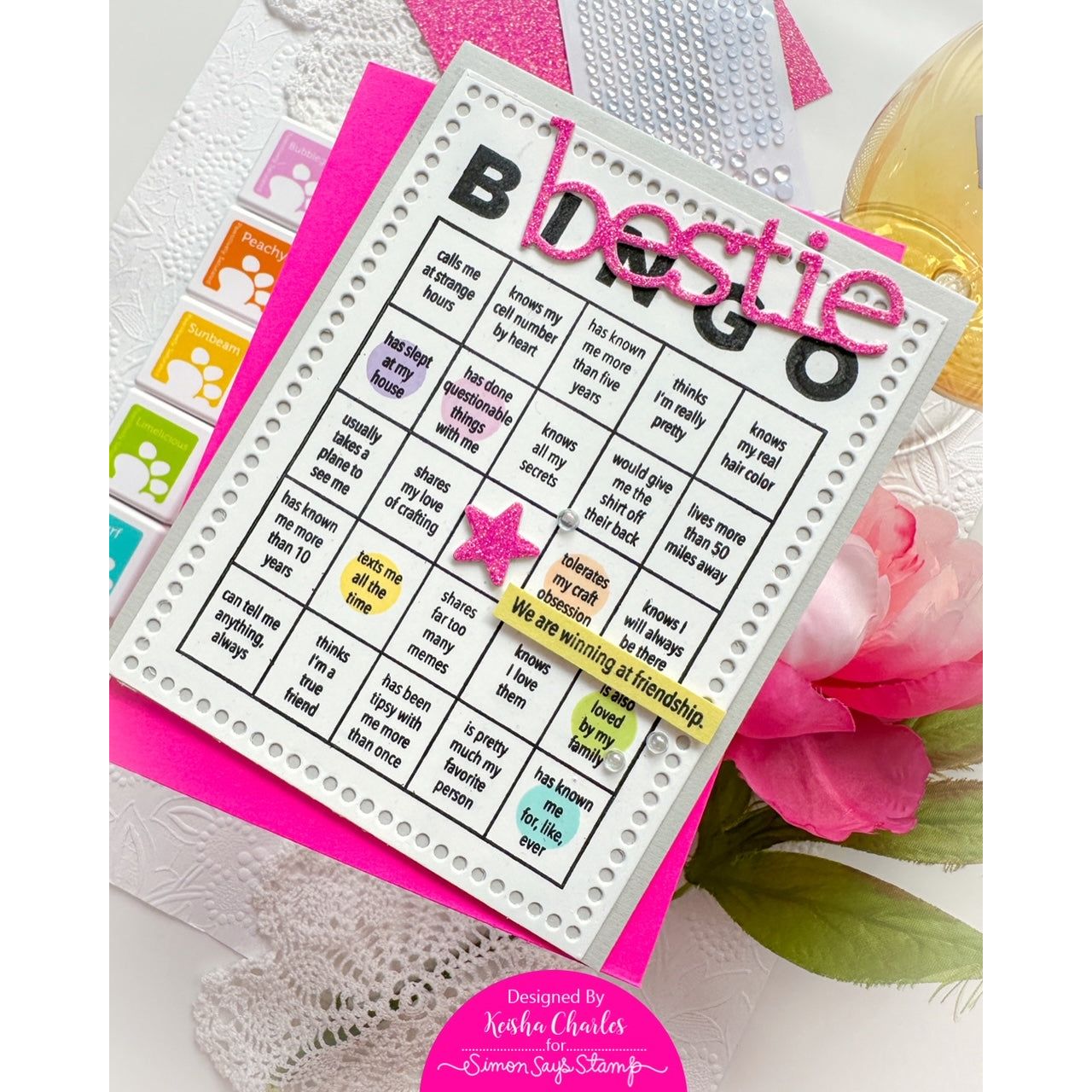 - Coordinates with the Friendship Bingo stamps (cz385c, sold separately).