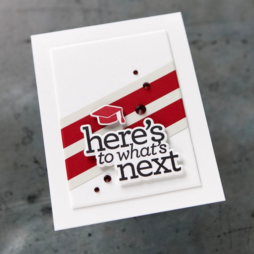 The CZ Design Grad Basics dies are designed to coordinate with the Grad Basics stamp set. This versatile die set cuts out the seven largest sentiments, all three sizes of graduation caps, and the heart, making it easy to add dimension and precision to your graduation-themed projects.