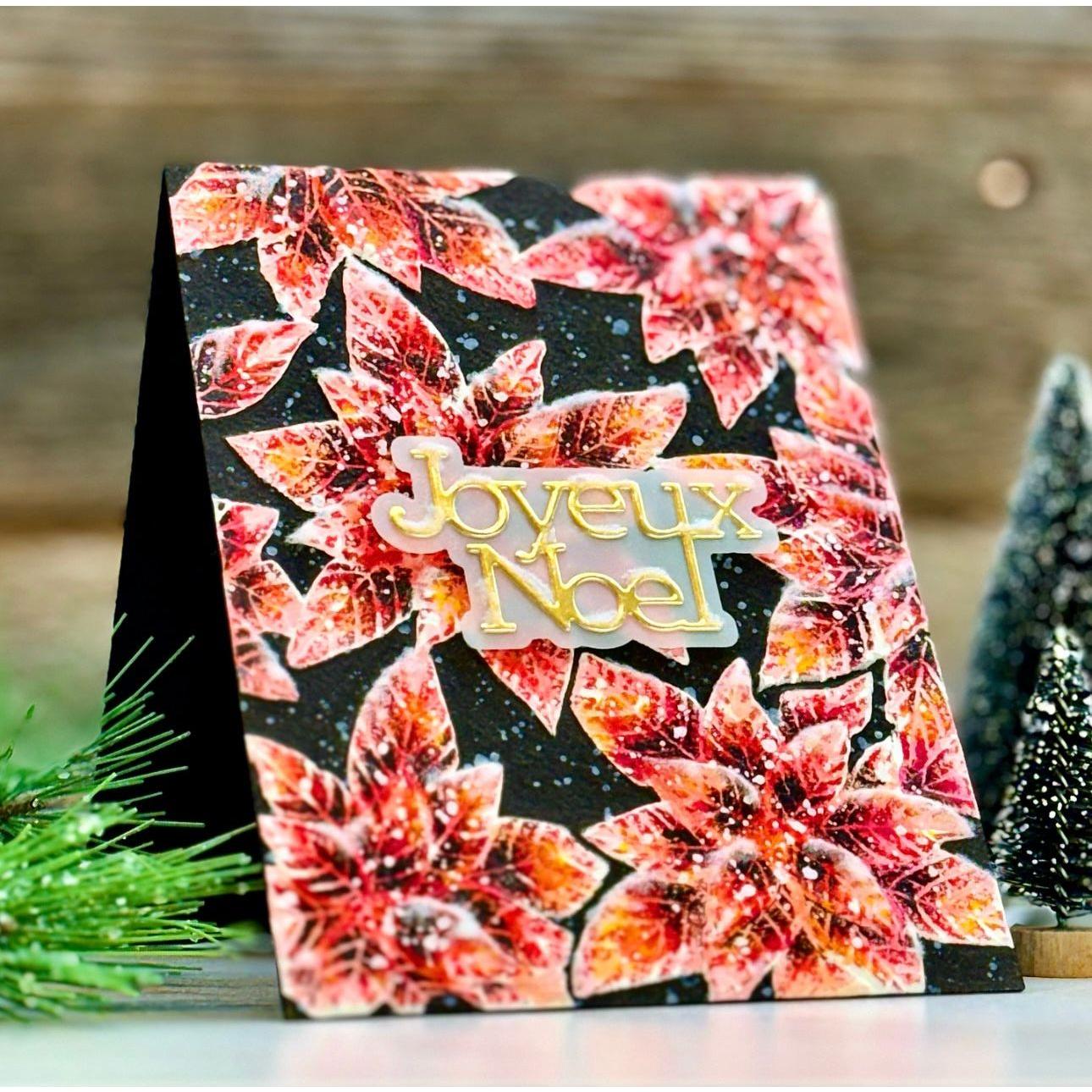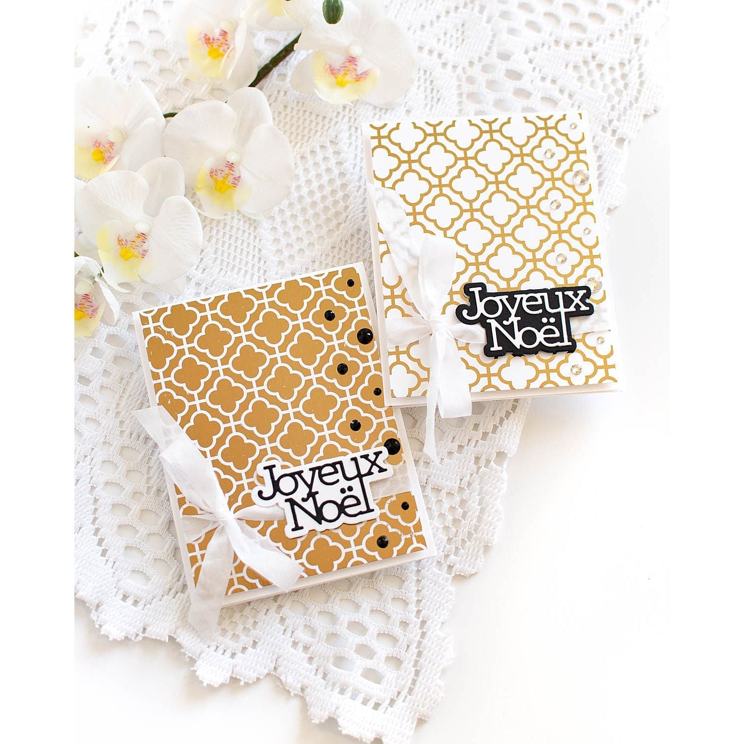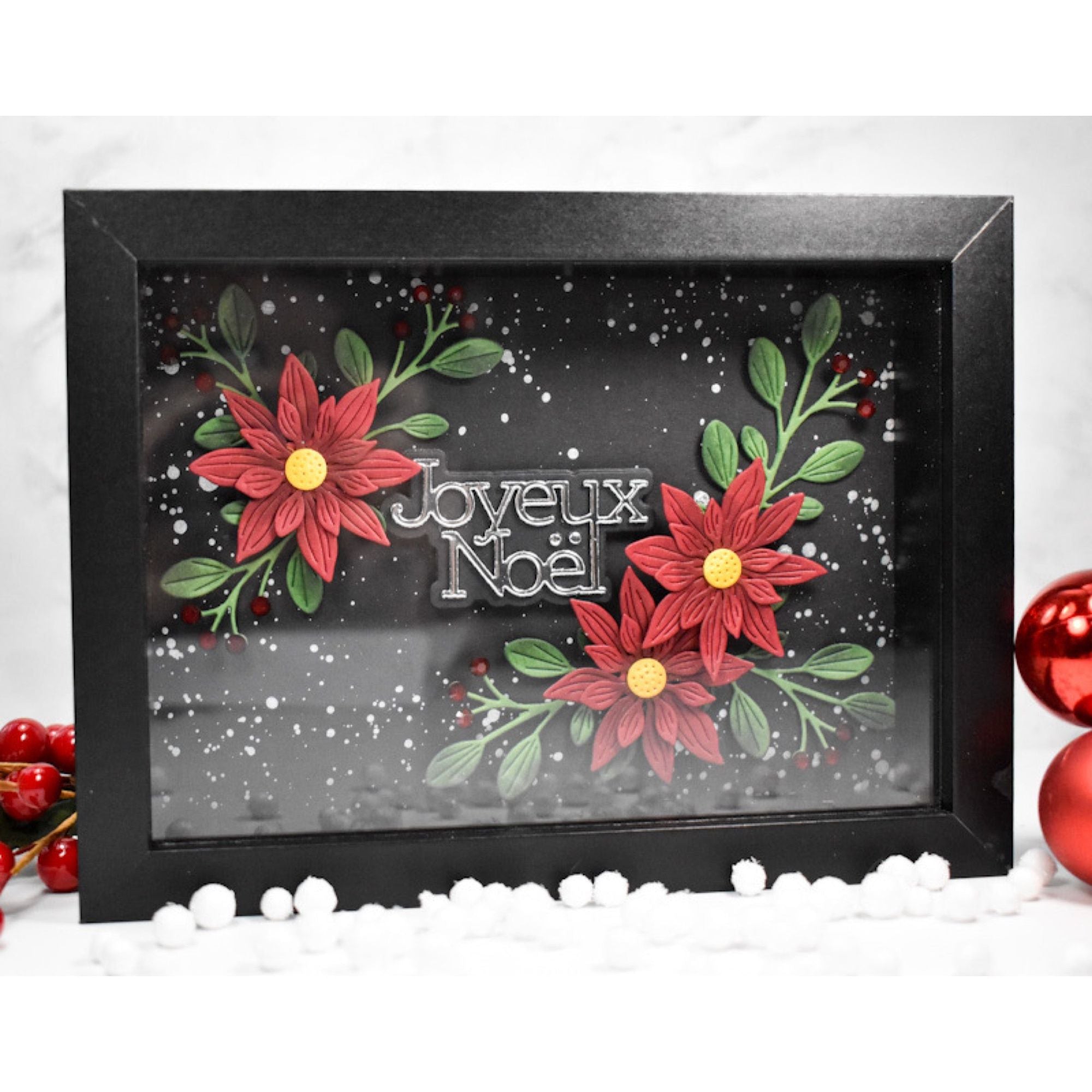 The CZ Design Joyeux Noël die creates a stylish, stacked design of the phrase "Joyeux Noël" in a modern typewriter font.