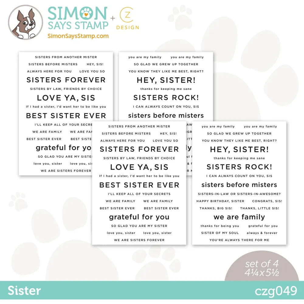 Celebrate the special bond between siblings, sisters-in-law, or friends that feel like sisters with the Simon Says Stamp Sister Sentiment Strips, a delightful collection of pre-printed messages designed to honor and cherish the unique connection you share with your sister. This charming assortment features a variety of heartwarming and affectionate sentiments, perfect for birthdays, milestones, or simply to let your sister know how much she means to you.
