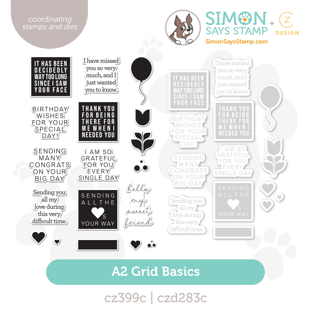Perfect for card fronts, tags, or modern scrapbook layouts, the A2 Grid Basics set brings graphic CZ style and endless versatility to your crafting. CZ Design products are available exclusively from Simon Says Stamp.
