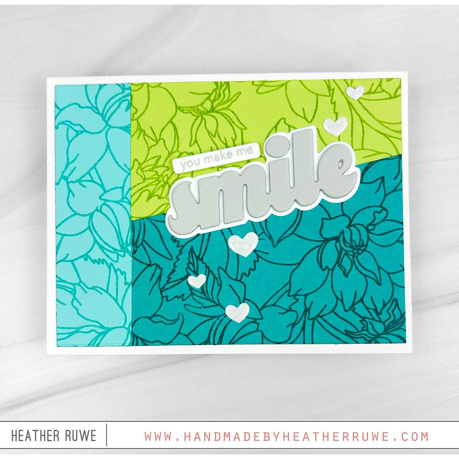 Brighten someone’s day with the CZ Design Smile stamp and die bundle. This cheerful sentiment set features two standout “Smile” stamps—one in a clean, simple script and the other in a bold, retro-inspired mod font—giving you playful options for a variety of styles. There are also smaller versions of the word "your" in matching fonts. The dies cut out both versions of the word “smile” as well as both versions of the word “your.” The additional Solo Smile provides a die for the mod version as well as an outline.
