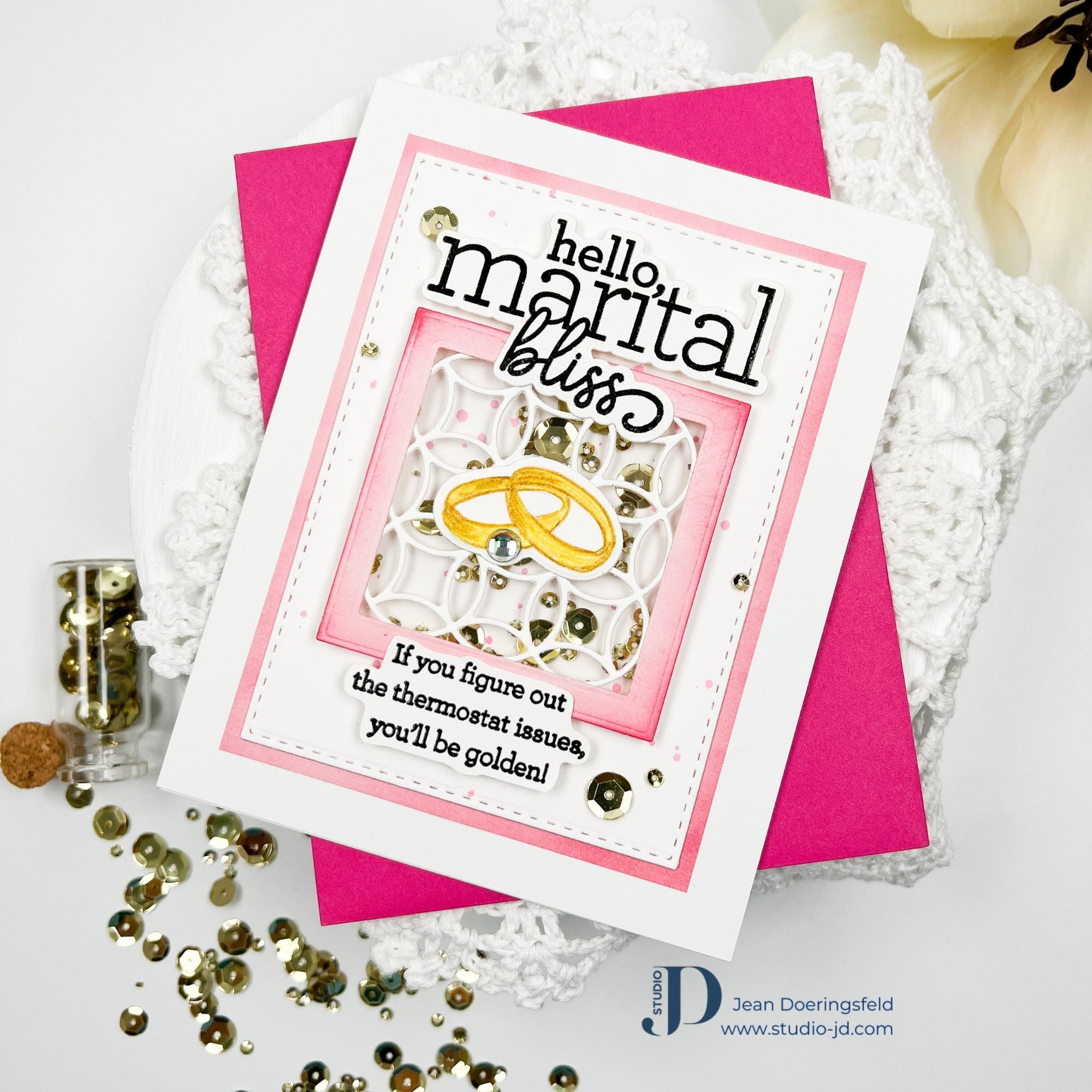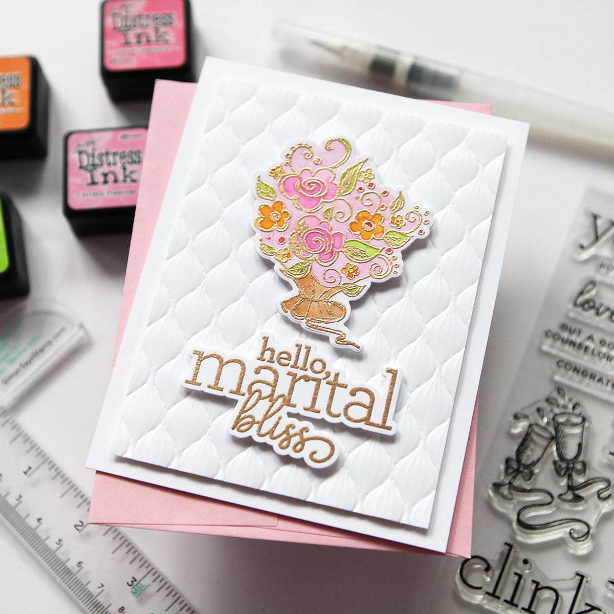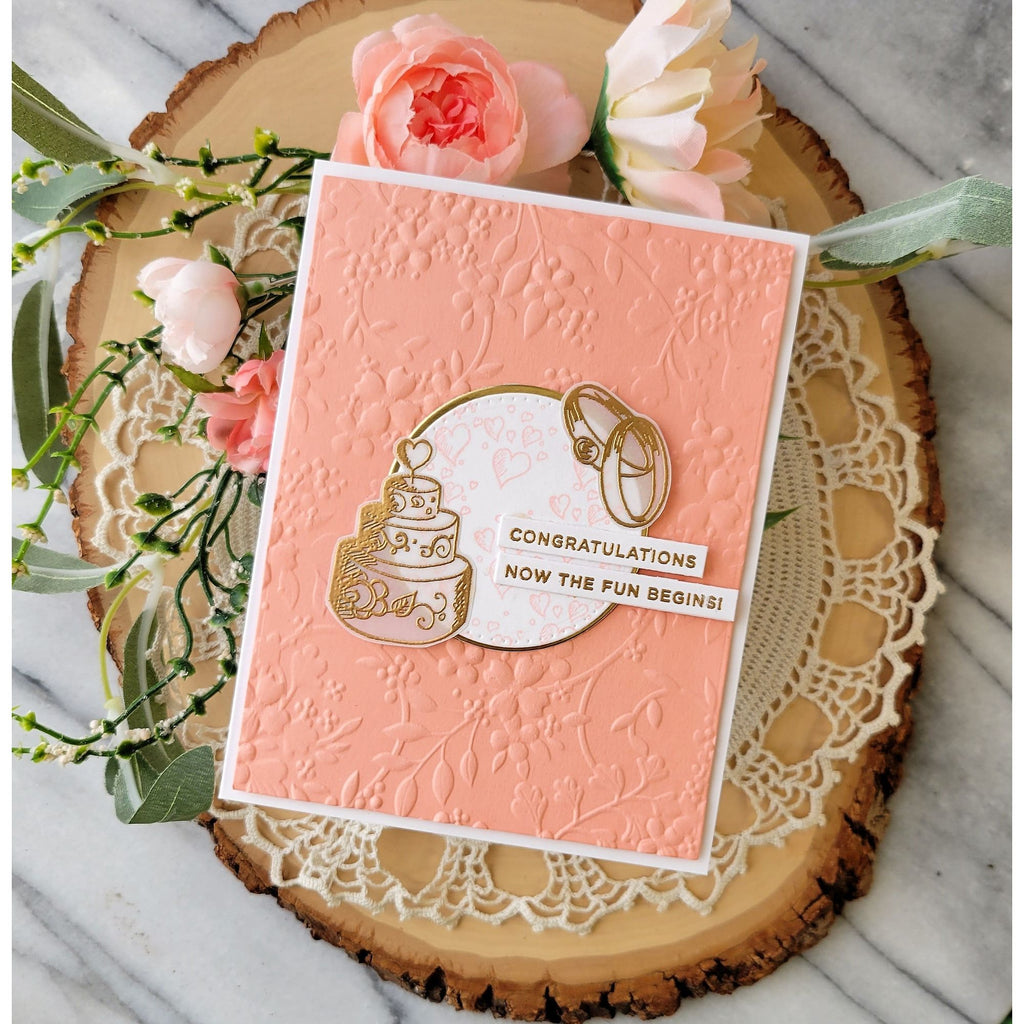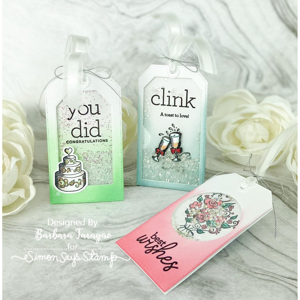 After they've said their "I do"s, this 6x8 inch clear stamp set helps you celebrate that they did! The cheery wedding images and cheeky sentiments help you to create wedding and anniversary cards and projects that stand out. The 12-piece coordinating die set cuts out all the images and the 5 main greetings. Simon Says Stamp clear stamps are high-quality photopolymer and made in the USA. Stencil with inks or use with glitz gels, pastes, sprays, markers, journaling pens—you name it!