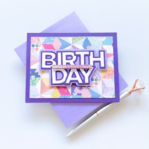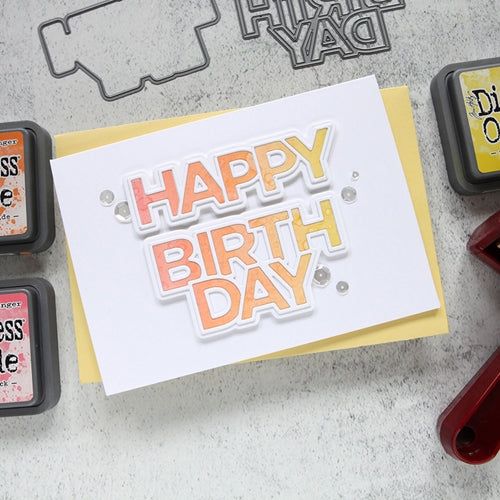 This die set was designed by Cathy Zielske. The sentiment measures approximately 2 x 4 inches and includes a companion shadow die.