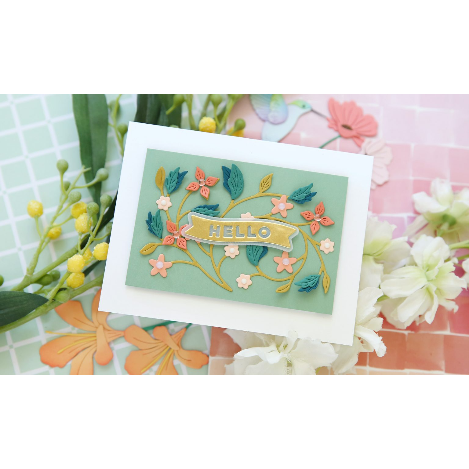 This versatile die set effortlessly cuts out small banners featuring various sentiments, along with a perfectly coordinating outline. The sentiments include: