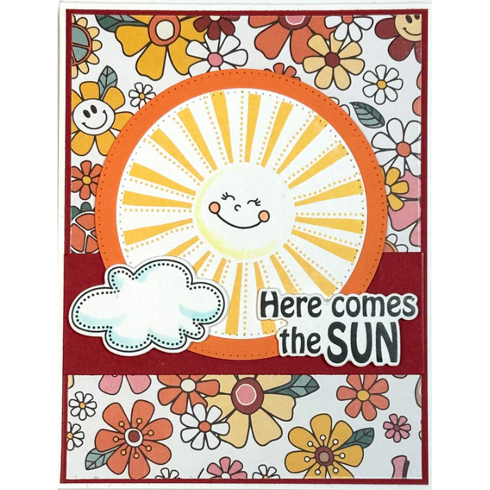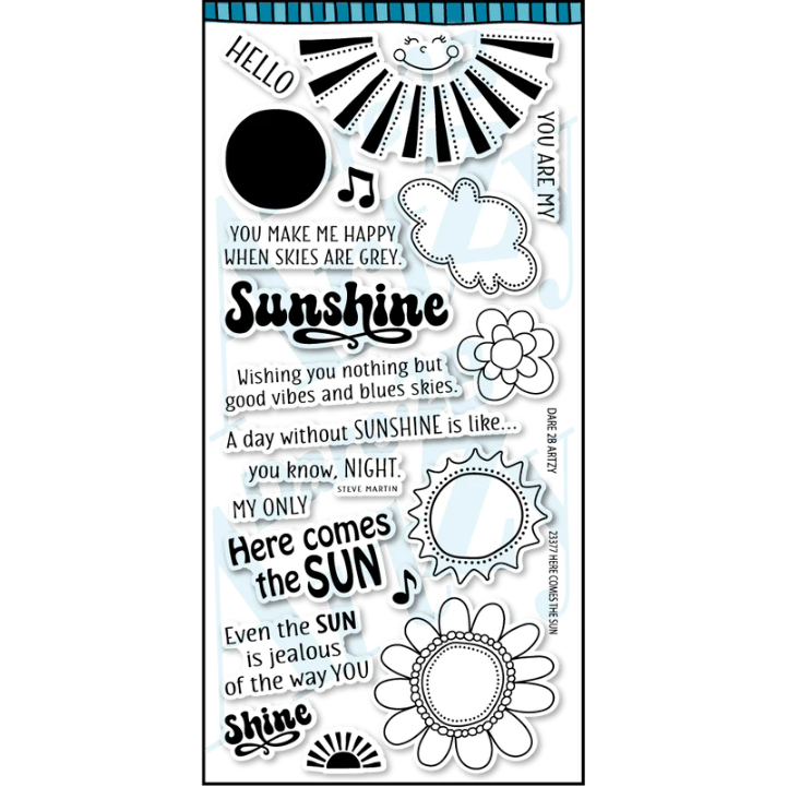 This long stamp set is full of sentiments for any beautiful day! There are so many combinations: 'Even The Sun Is Jealous Of The Way You Shine', 'You are my SUNSHINE My only SUNSHINE', 'You make me happy when skies are grey', 'A day without sunshine is like...you know...NIGHT' and 'Hello Sunshine'.