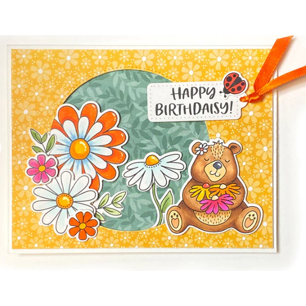 Our Oopsie Daisy Stamp Set allows you to combine beautiful flowers with sentiments such as 'I think about you every daisy', 'A little note to brighten your daisy' and 'Oopsie Daisies I forgot your birthday'. This set includes 5 different sized flowers to give you the most flexibility for a card or page layout.
