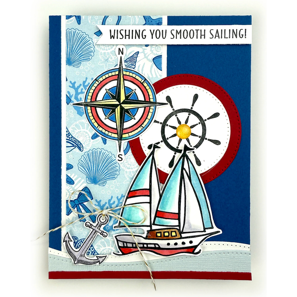 The Dare 2B Artzy Set Sail Die Set is designed to coordinate perfectly with the Set Sail Clear Stamp Set. This set includes high-quality steel dies that cut out the sailboat, anchor, compass, and all the nautical elements and sentiments, making it easy to create clean, professional-looking layered projects with a maritime flair. Ideal for birthdays, anniversaries, and summer celebrations.