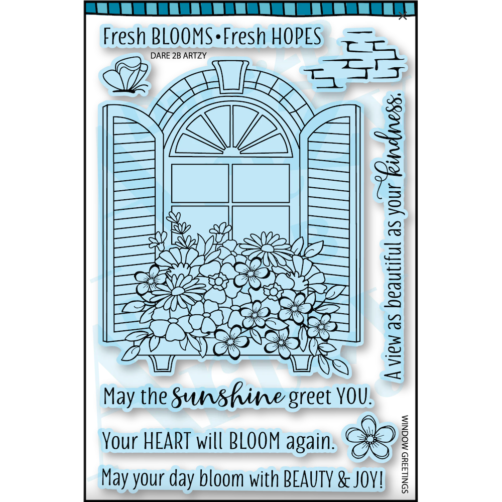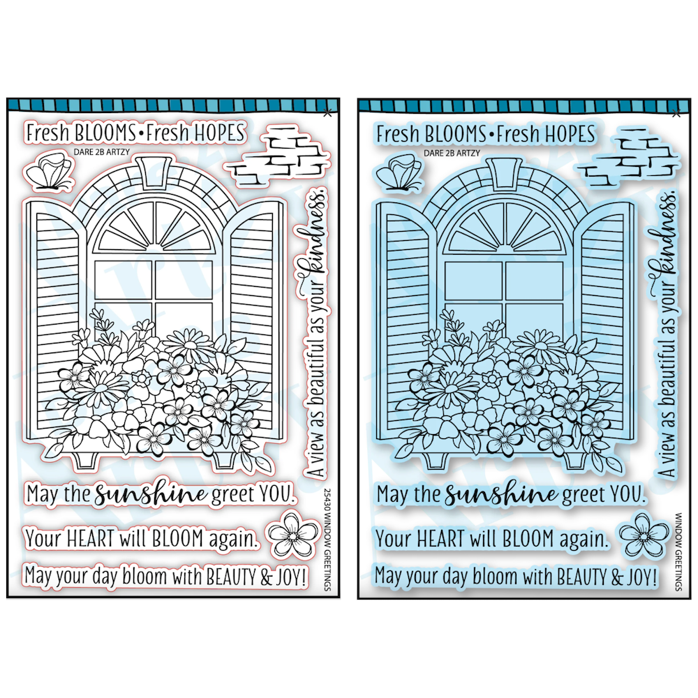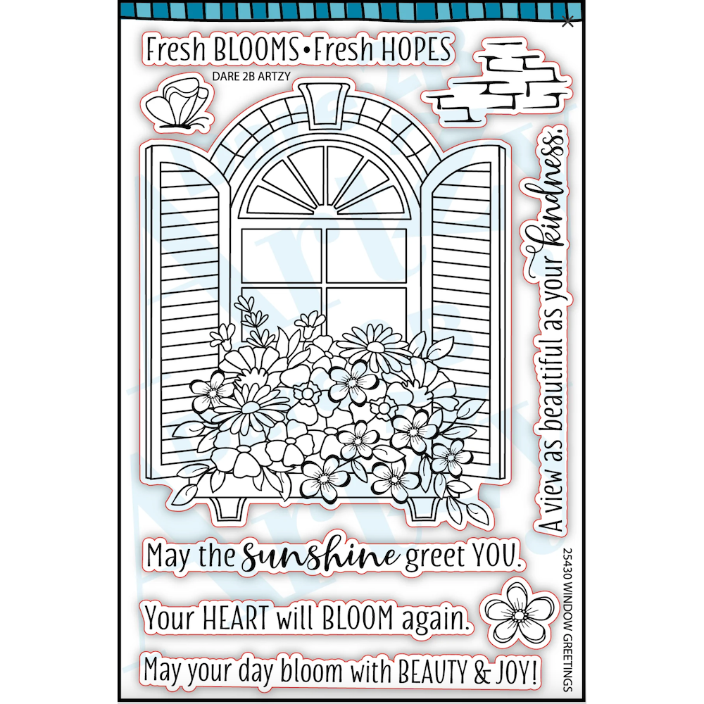 Let your creativity bloom with the Dare 2B Artzy Window Greetings Stamp and Die Bundle. This coordinating set features an arched window filled with flowers, fluttering butterflies, and encouraging sentiments. Perfect for adding elegance and warmth to cards, journals, and scrapbook pages Sentiments include,