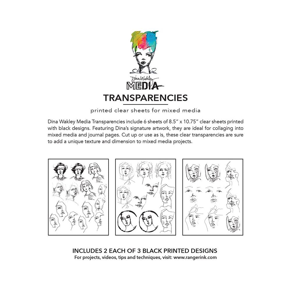 Dina Wakley Ranger Tinies Set 1 MEdia Transparencies is a must-have for mixed media artists. This set includes 6 clear sheets, each measuring 8.5 x 10.75 inches, adorned with intricate black designs created by the talented Dina Wakley. From collaging to journaling, these transparencies add a touch of elegance and dimension to your projects. With 2 sheets each of 3 unique black designs, you'll have endless possibilities to create one-of-a-kind mixed media pages.