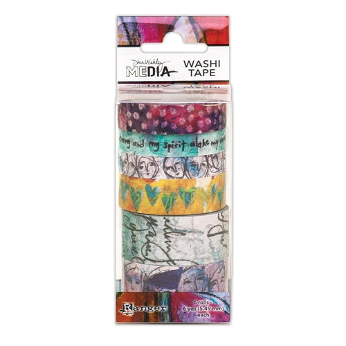 Dina Wakley Media Washi Tape features exclusive artwork from Ranger Signature Designer, Dina Wakley. Collage tape into mixed media projects, journal pages, or use to bind art journals and other books. Available in a boxed set of 6 rolls. Each roll measures 6 yards (5.49 m) and each set contains various widths.