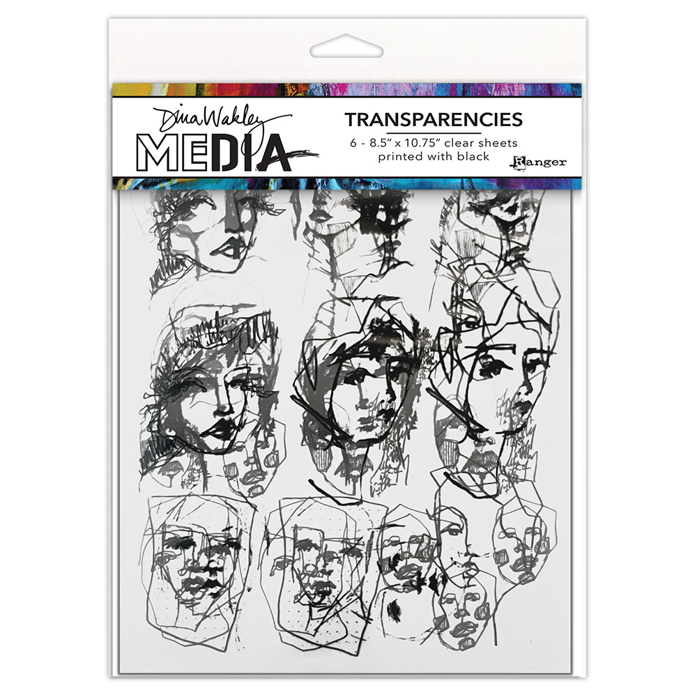 This set of Dina Wakley Media Transparencies, known as Tinies Set 2, consists of six sheets measuring 8.5 x 10.75 inches (21.59cm x 27.3cm). The sheets are transparent and printed with black designs, featuring Dina's signature artwork. Perfect for collaging and adding texture to mixed media and journal pages, these transparencies can be used as they are or cut into smaller pieces. Each design is printed twice, resulting in a total of six pieces.