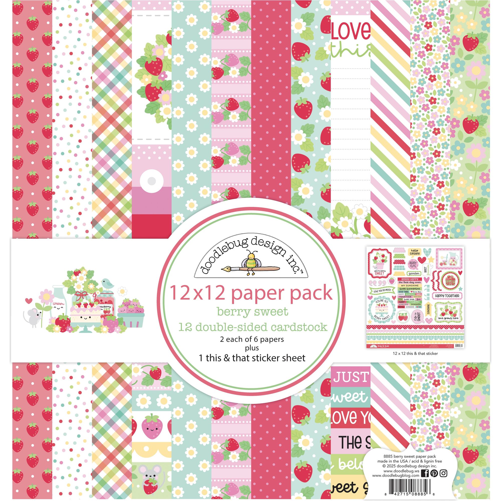 Indulge in the sweetest summer memories with Doodlebug's Berry Sweet Paper Pack. Featuring 12 double-sided 12x12 inch cardstock sheets of confetti, strawberries, gingham, and more, plus a bonus sheet of 12x12 inch stickers. Perfect for adding a touch of whimsy to your projects.