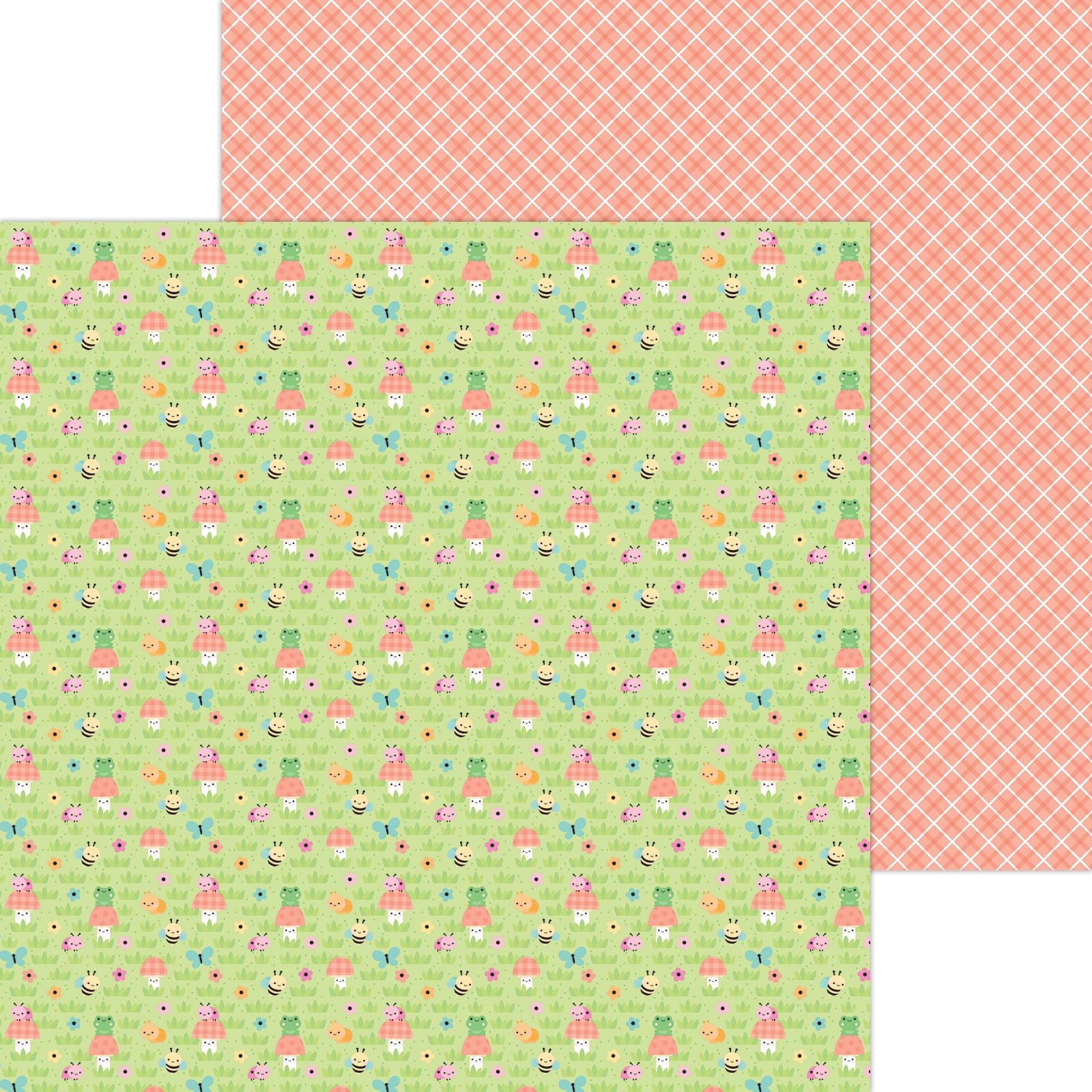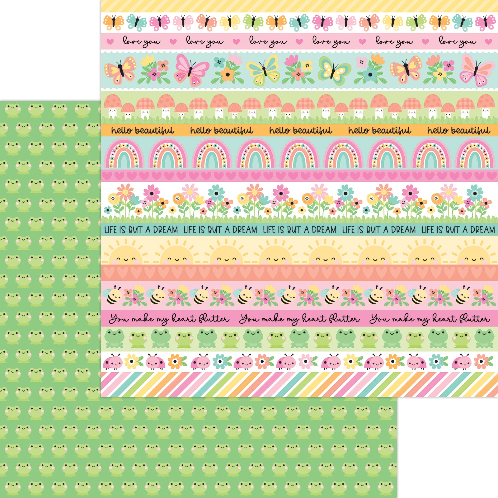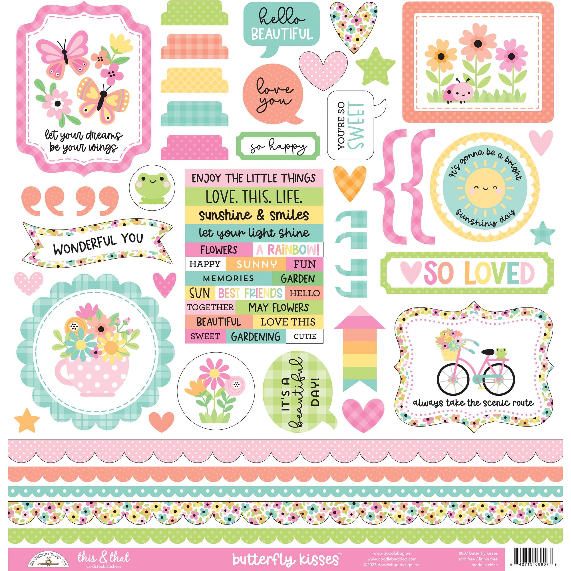 Doodlebug Butterfly Kisses 12x12 Inch Paper Pack is here to add some fun to your crafting projects! With 12 sheets of double-sided cardstock featuring multi-colored flowers, frogs or toads, butterflies, hearts, rainbows, colorful tags, gingham, polka dots, sunshine, text print, clouds, a mix of bees, ladybugs, and more, you'll be sure to craft something magical! Get creative with folksy flair and let your artistic side run wild! As a special bonus, this special pack also includes one 12x12 inch sheet of 'This and That' stickers that coordinate perfectly with the collection!
