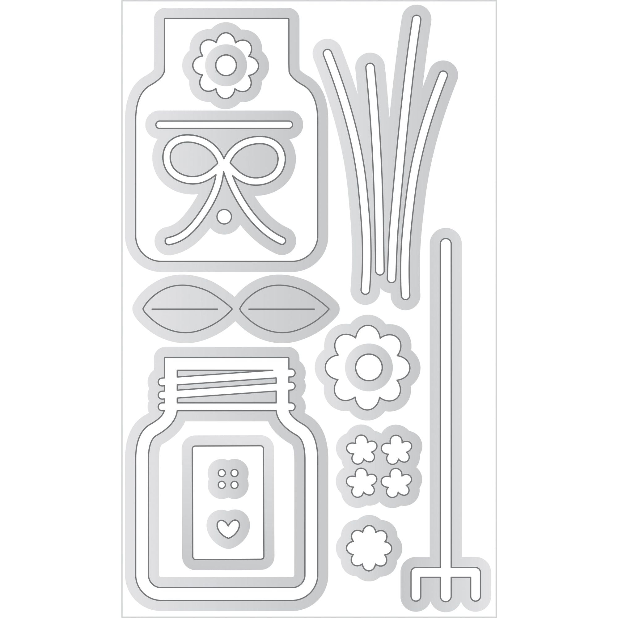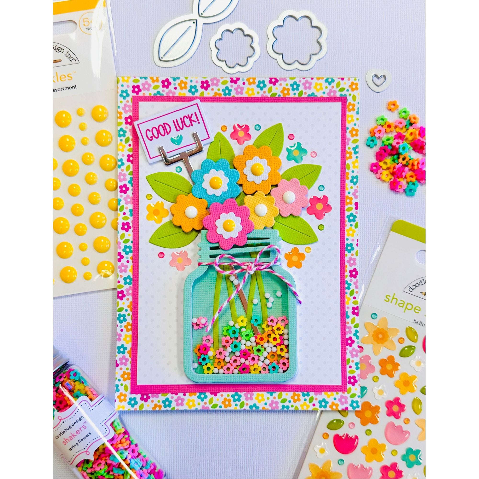 Craft your own charming floral arrangements with the Doodlebug Festive Floral Doodle Cuts! This unique stand-alone die set features a variety of elements such as a jar, bow, confetti, and more to create a sweet and customizable bouquet. Add a thoughtful note or card with the included insert for a special touch. Get ready to let your creativity bloom! Overall dimensions of set are approximately 6.75 x 4 inches or 5.125 x 3 inches when assembled.