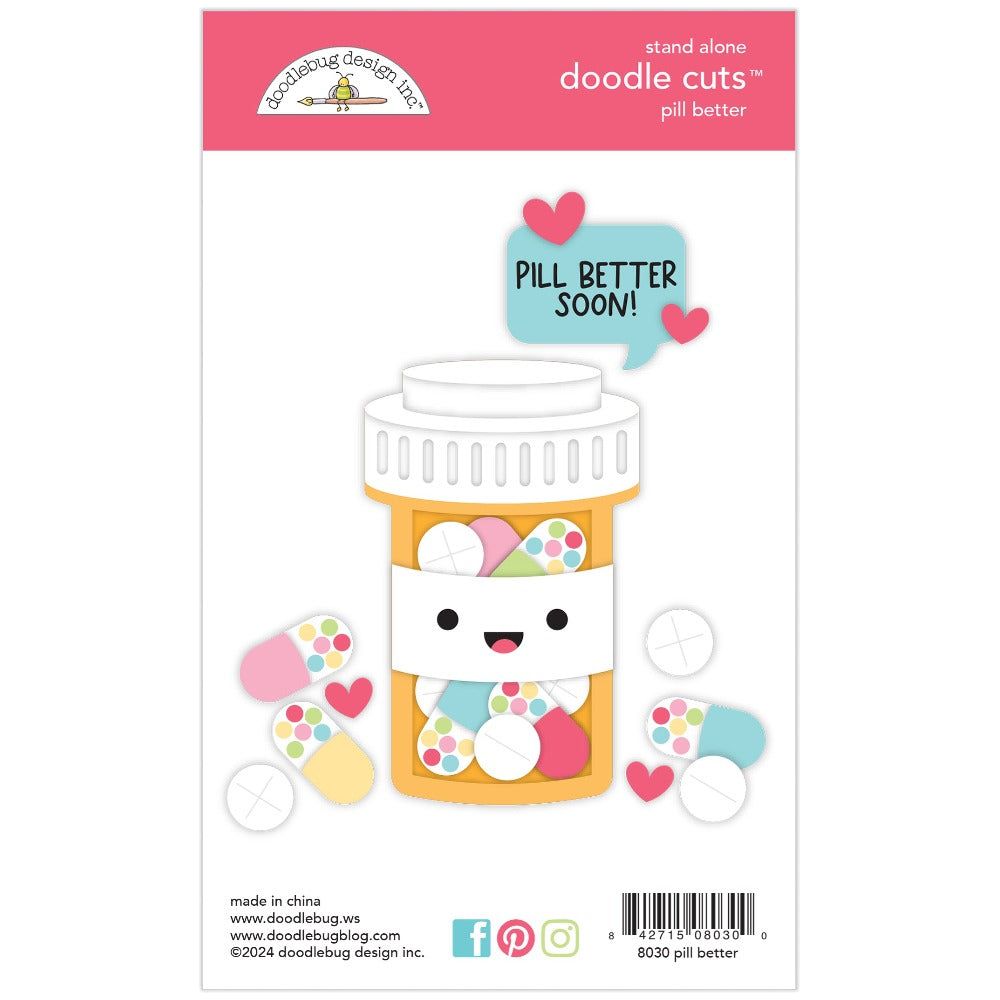 Introducing the Doodlebug Pill Better Doodle Cuts Dies! With a playful design featuring a smiling pill bottle and individual pill dies, this die set is sure to bring a smile to your face. Use the speech bubble icon to add a unique sentiment to your card or project. Take your crafting medicine to the next level with this fun and creative set! (Sentiments not included) The entire die sheet measures approximately 6.5 x 4 inches. Assembled pill bottle measures approximately 3.25 x 2 inches.