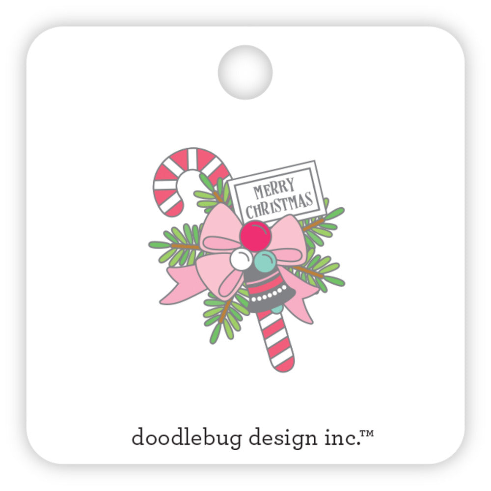 Add a touch of whimsy and holiday cheer to your wardrobe with our Doodlebug Season's Greetings Collectible Pin. This enamel pin features a candy cane adorned with a festive bow, bell, and evergreen, perfect for adding a pop of Christmas spirit to your coats, jackets, and bags. Pin measures approximately 1x1 inch.