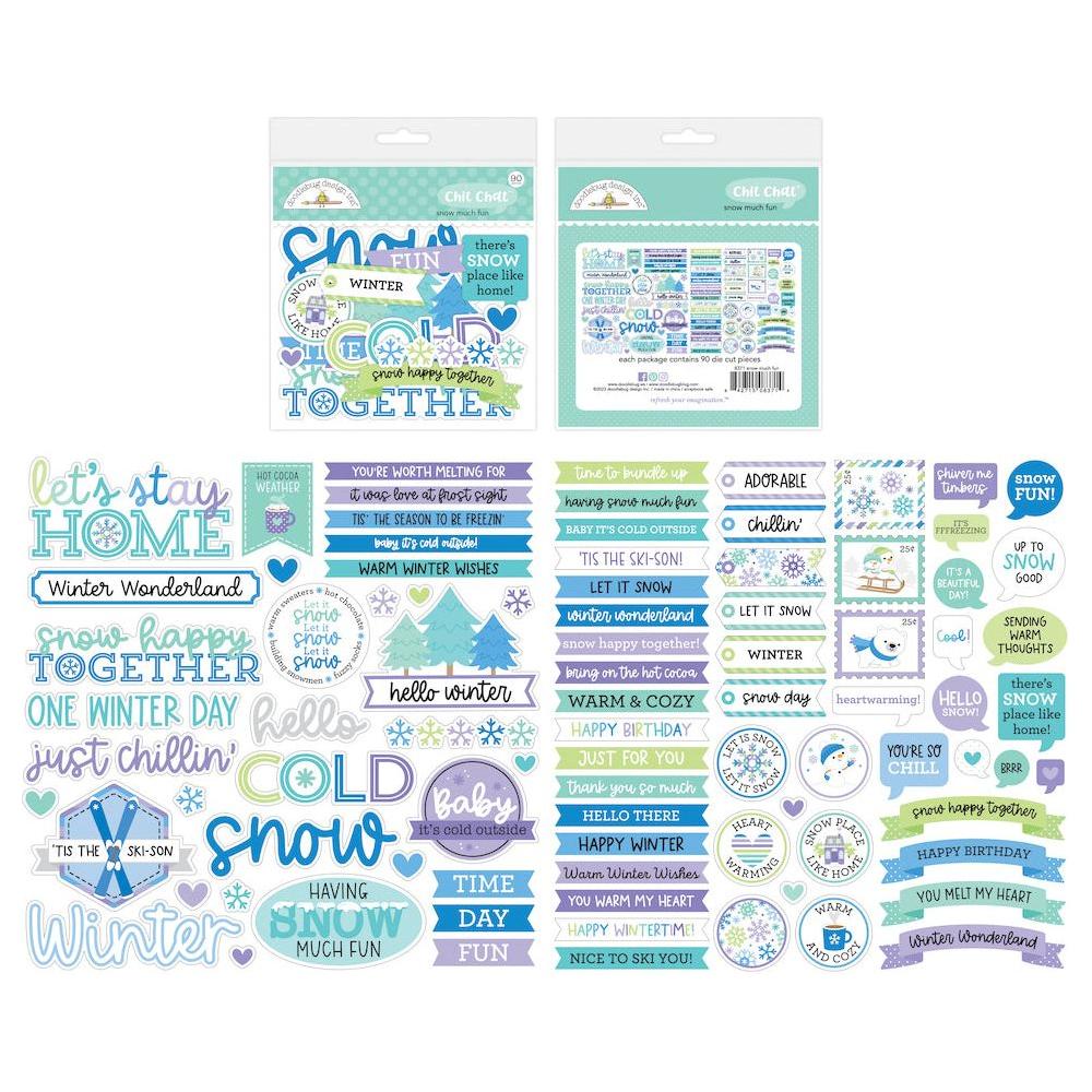 Enhance your winter crafts with Doodlebug Snow Much Fun Chit Chat Ephemera! This 90-piece set includes charming sentiments like "Let's Stay Home" and "Baby It's Cold Outside", perfect for adding a touch of coziness to your projects. Express love and friendship with phrases like "You're Worth Melting For" and "Snow Happy Together". Packaging is approximately 6x6 inches.