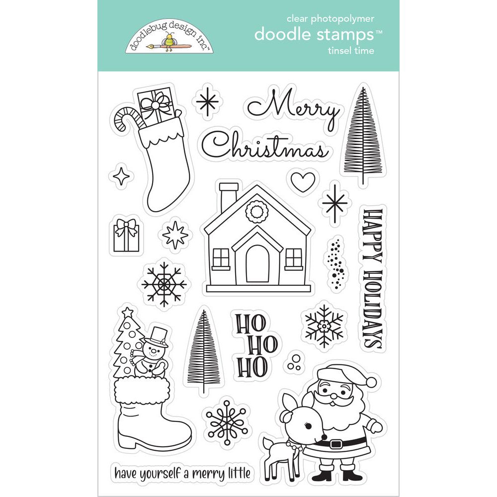 Embrace the magic of the holiday season with Doodlebug Tinsel Time Doodle Stamps. This 4x6 inch clear stamp set features charming designs such as a stocking, snowflakes, and Santa, perfect for adding festive flair to your crafts. Let your creativity sparkle with this exclusive collection. Sentiments included: