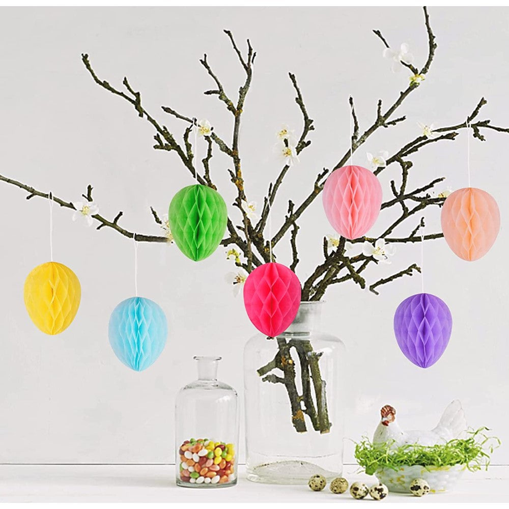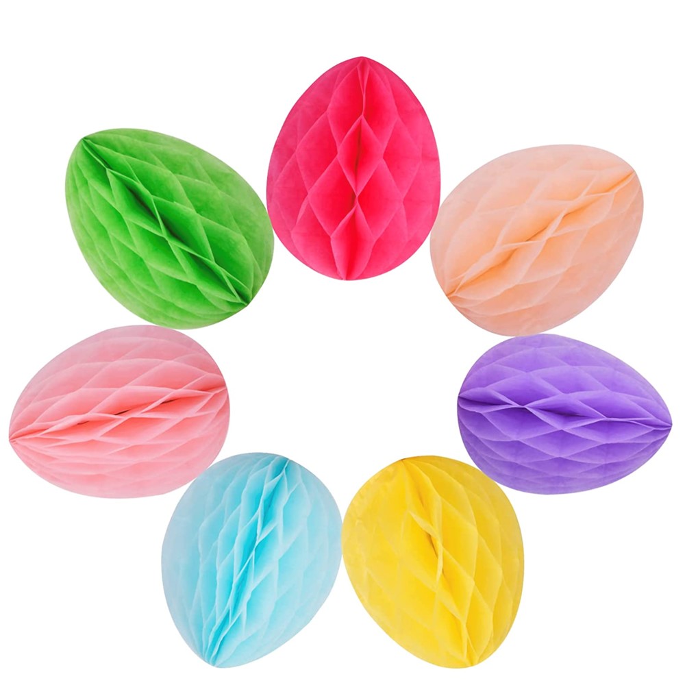 Jump into the Spring season with these adorable and colorful Honeycomb paper Easter Eggs! There are 7 hanging paper eggs in the package, pink, light orange, light blue, yellow, purple, green and magenta, 1 of each color. Bright colors bring visual beauty, as easter decorations for the home or to bring a dimensional pop to your card making! They can be hung anywhere, including fireplaces, porches, decorative wreaths, Easter mini trees, easter basket for kids. You can happily decorate your home with your children! Want to add a dimensional surprise to your card making? Add them to the interior of your Easter cards with a fun message to accompany.