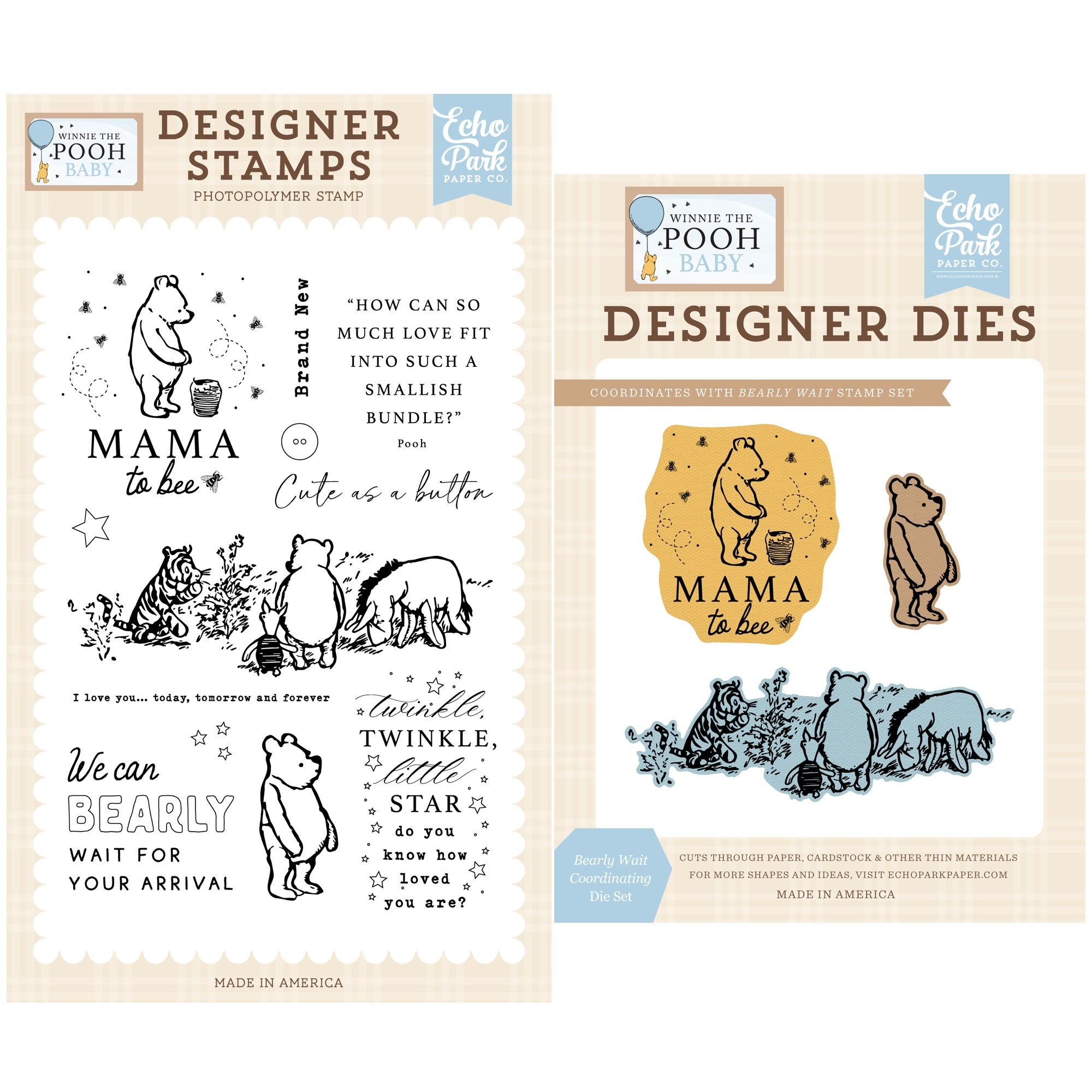 Indulge in the whimsical world of Winnie the Pooh with the Echo Park Bearly Wait Clear Stamps. These high quality stamps feature intricate designs perfect for adding a touch of charm to your cardmaking and scrapbooking projects. With pre-cut stamps mounted on an acrylic block (sold separately), creating stunning paper crafts has never been easier. Don't miss out on this delightful 4x6 inch stamp set and coordinating dies, complete with Winnie the Pooh, Tigger, Piglet, Eeyore, honey pot, stars, and more.