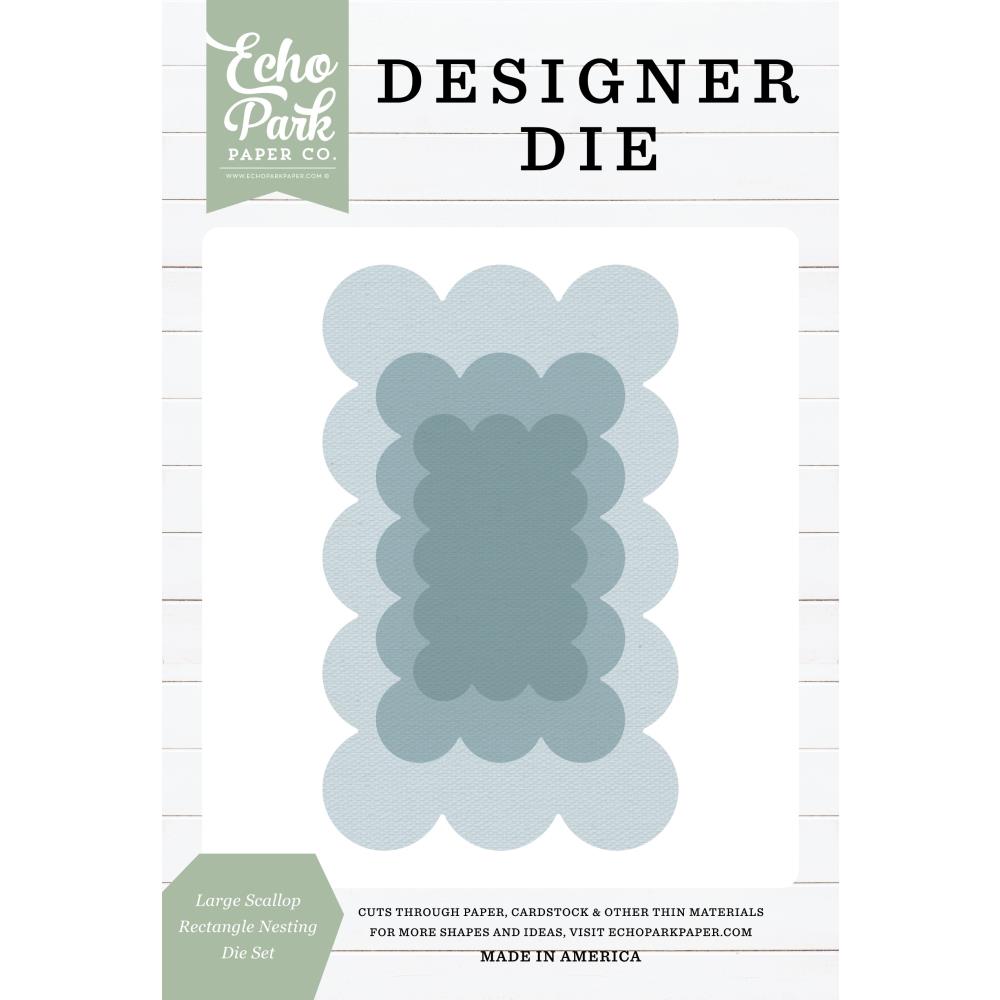 The Echo Park Large Scallop Rectangle Nesting Dies offer versatile designs for various paper crafts. Create beautiful shapes to enhance your projects, using them individually or in combination with other dies. These durable dies are compatible with most leading die cutting machines and are perfect for cards, scrapbooks, journals, gift cards, bookmarks and more. Let your creativity run wild and decorate them with paints, powders, rice paper, stamps, or stencils. This set includes one die set, providing endless possibilities for your crafting projects.