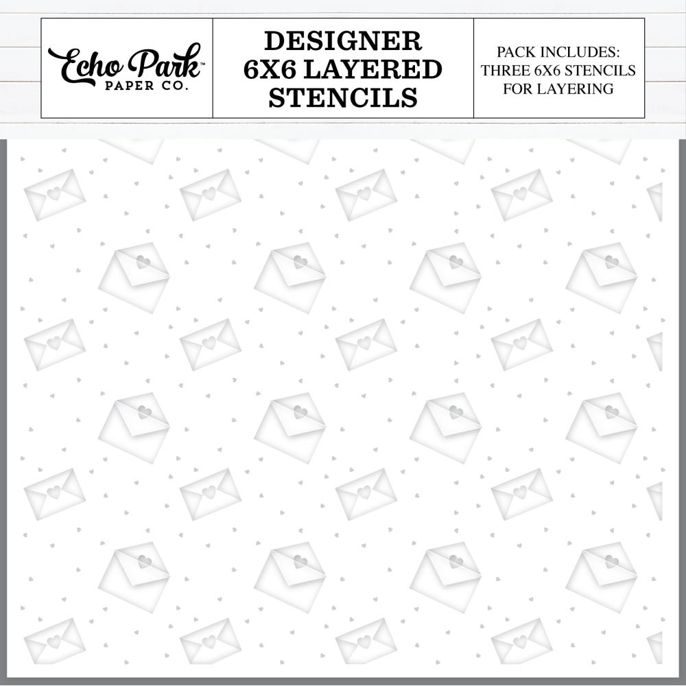 Add a touch of love to your crafts with the Echo Park Love Mail 6 x 6 Stencils. Featuring charming envelopes sealed with hearts and tiny dots, these 3 durable mylar layering stencils are perfect for mixed media, card making, scrapbooking, and more. Use with paint, ink, chalk, or mica mists for vibrant designs, or try dry embossing for a subtle, textured look. Whether layered or solo, they bring playful charm to every project. Compact and versatile, they're a fun addition to your creative toolkit!