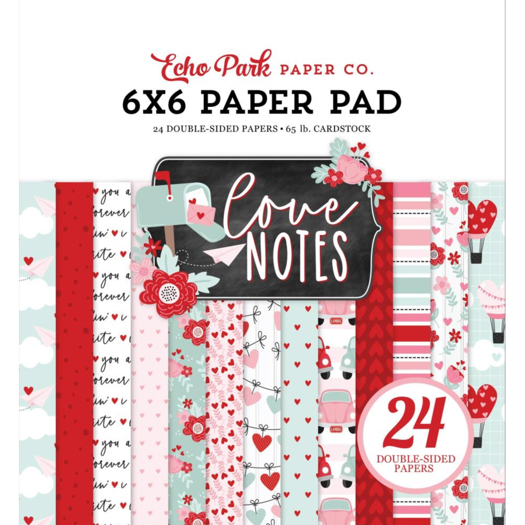 Discover the perfect paper for all your crafting projects with Echo Park Love Notes 6x6 Paper Pack. Featuring 24 double-sided sheets in shades of red, pink, blue, and white, this 65lb. pad contains 2 of each design including hot air balloons, flowers, hearts, mailboxes, love letters, paper airplanes, and lovebug cars.