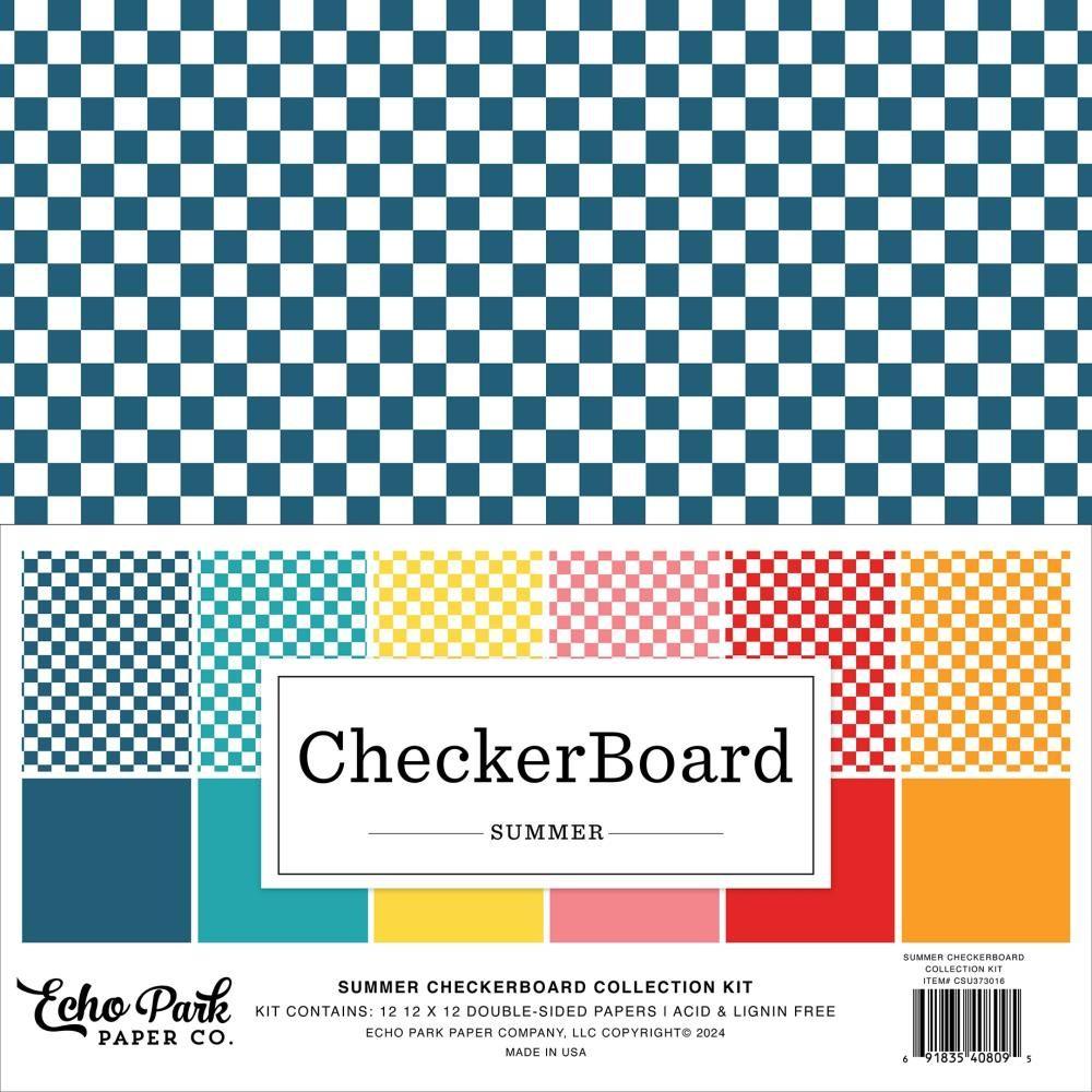The Echo Park Summer Checkerboard Collection Kit is the ideal choice for all your scrapbooking needs. Each double-sided 12x12 inch paper is made with 65lb weight for durability and versatility. Create beautiful pages, cards, bookmarks, and more with the vibrant colors of red, orange, yellow, pink, turquoise, and blue.