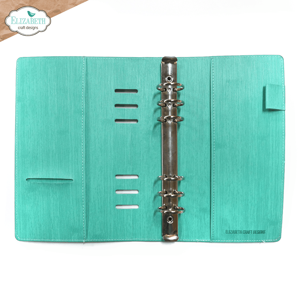 The Elizabeth Craft Designs Bermuda Blue Planner is part of the La Dolce Vita Planner Essentials collection. This A5 Slim Planner measures approximately 9 x 6.25 inches (23cm x 16cm). The planner features a bright teal blue faux leather cover with a numbers pattern, while the inside is lined with ribbed teal. It includes 6 metal rings for securely holding your planner pages, along with pockets and a pencil holder for added functionality. This planner combines style and practicality, making it an excellent choice for organizing your life in a vibrant, colorful way.