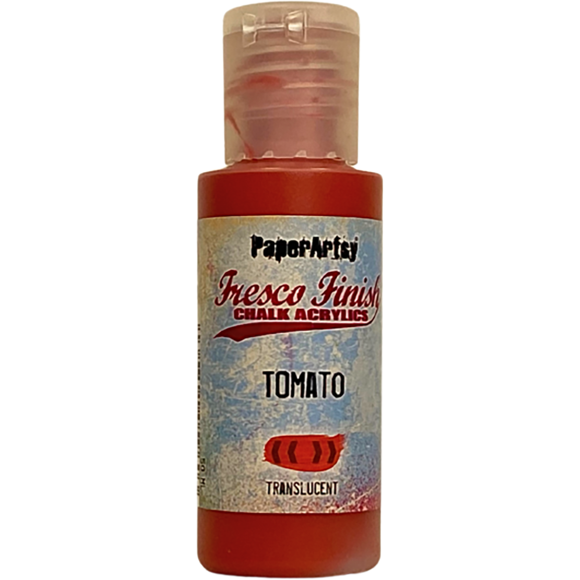 The Paper Artsy Fresco Finish Tomato Chalk Acrylic Paint by Seth Apter is a high-quality, water-based acrylic paint known for its excellent pigmentation. This paint is perfect for various surfaces, including paper, cardstock, metal, wood, ceramic, canvas, and more. It offers high low coverage and opacity, making it versatile for a wide range of art and craft projects. The Tomato color is a red shade that adds a lively and fresh touch to your creations. Its matte chalk finish is ideal for stamping, and you can dilute it with water for a wash or mix it with a glaze to achieve increased transparency. Shake well before using. Easy clean up in warm water. Additionally, it is low or has no VOCs (Volatile Organic Compounds), making it an eco-friendly choice. The bottle is approximately 1.69 oz (50ml). Please note that colors may appear differently on various screens, so the color description provided here serves as an approximation.