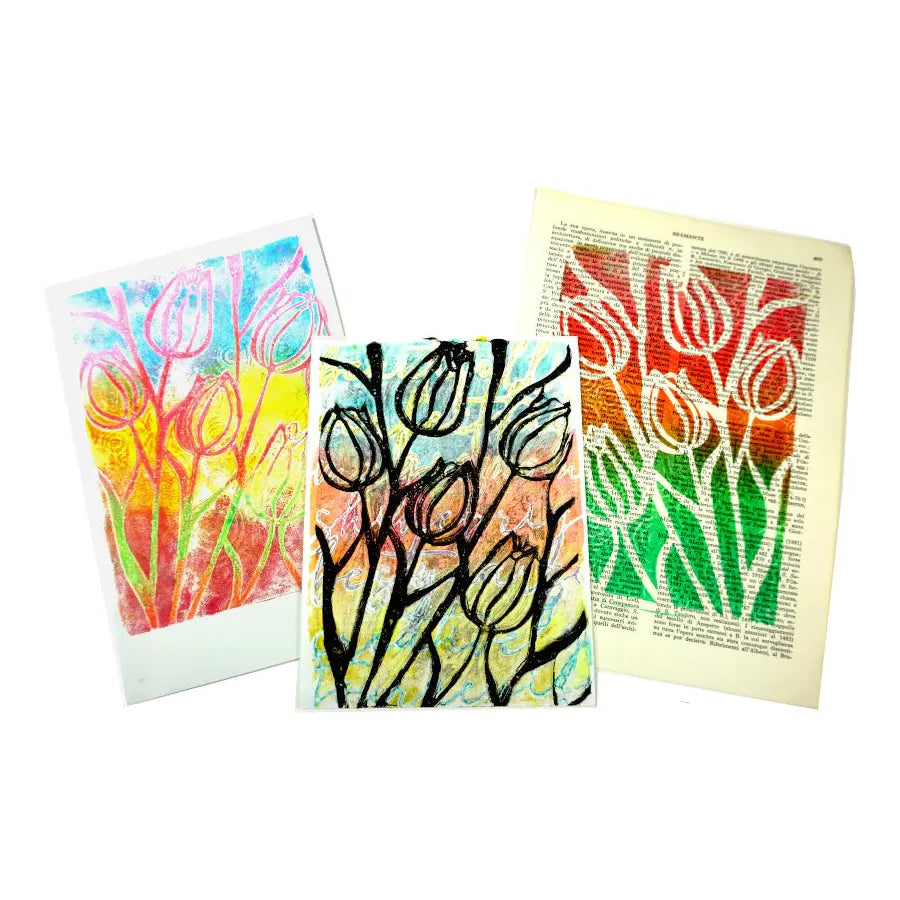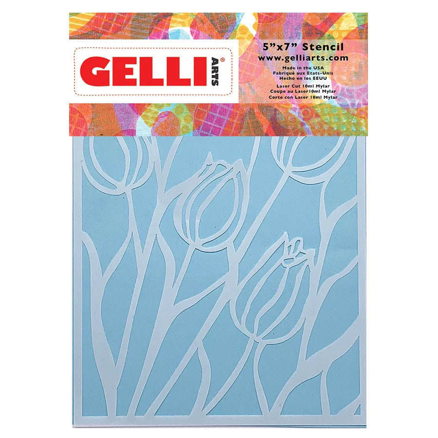 The Gelli Arts Tulip Stencil for Printing Plate, designed by Giovanna Zara, beautifully captures the grace of tulips swaying in the spring air. It instantly evokes the feeling of springtime. This stencil is a wonderful addition to your creative tools, perfect for card making and creating captivating backgrounds. Crafted from durable and reusable 10mil mylar, this stencil is designed to last. It measures approximately 5.25 x 7.25 inches, providing a versatile canvas for your artistic endeavors. With the Tulip Stencil, you can infuse your projects with the elegance of spring and create stunning visuals that capture the essence of this beautiful season.
