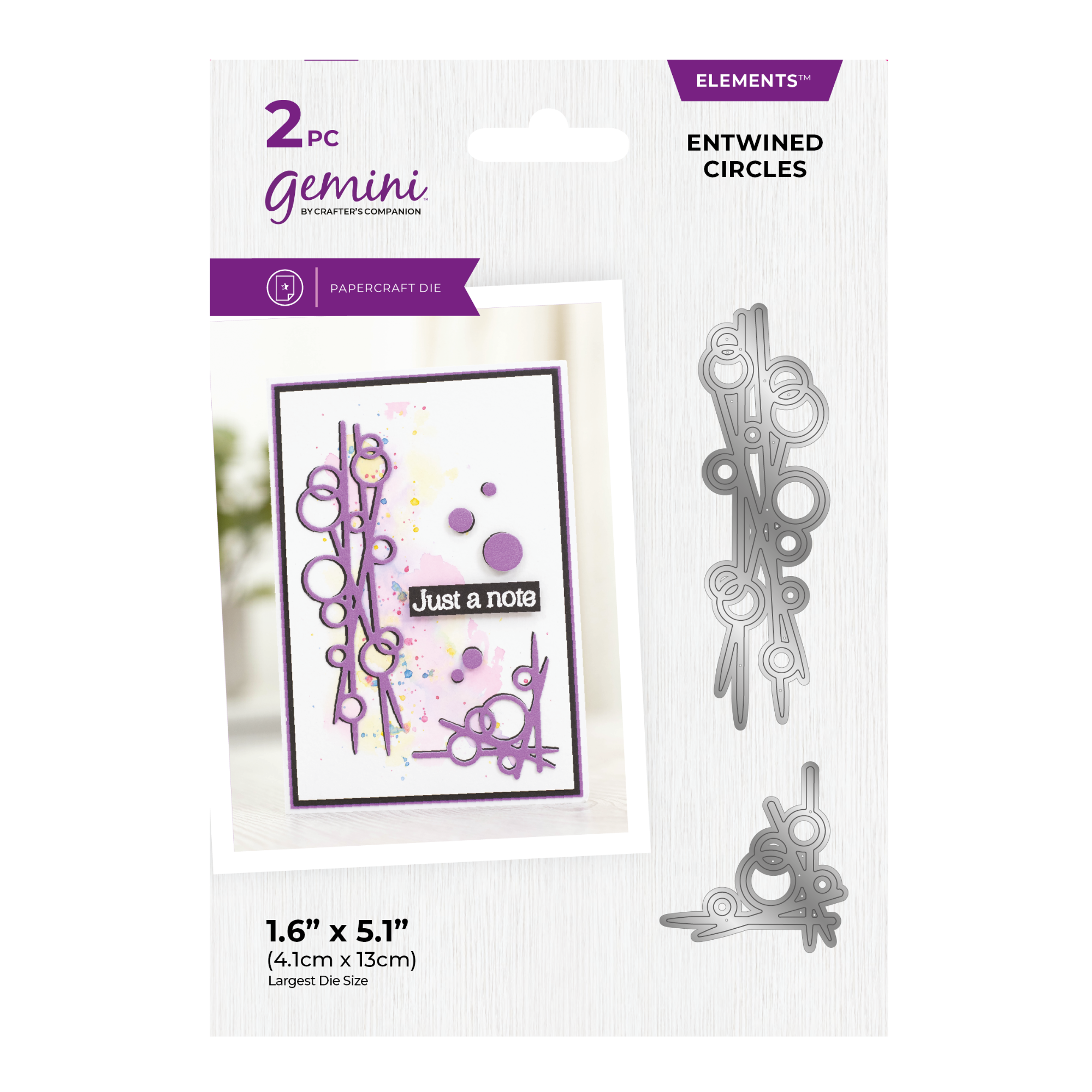 Crafter's Companion Gemini Entwined Circles Dies are a 2 piece die set perfect for adding intricate details to your papercrafting. The largest size is 1.6 x 5.1 inches, perfect for creating a range of beautiful looks.