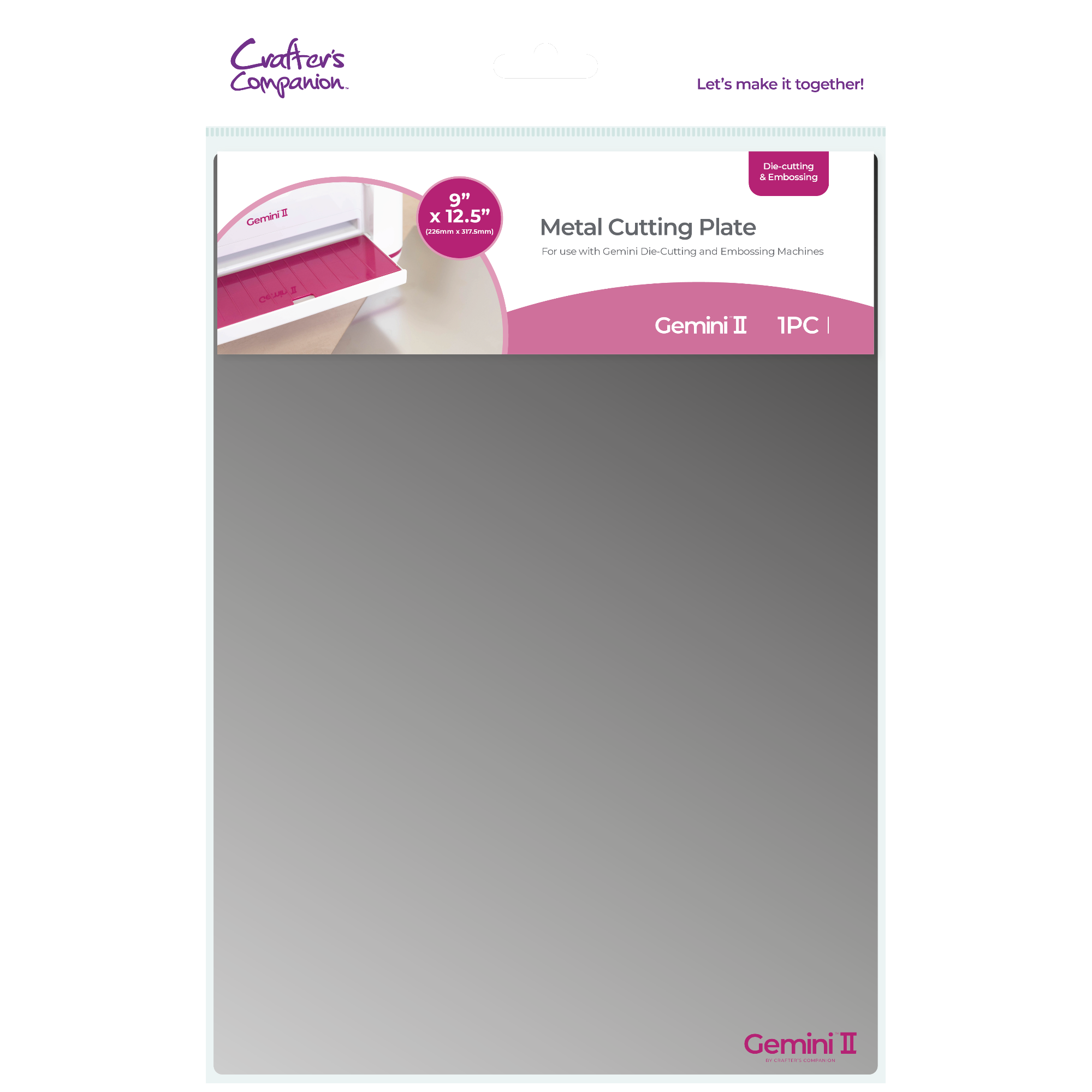 This Gemini ll Metal Cutting Plate from Crafter's Companion can cut intricate designs from multiple layers of fabric. Each 9 x 12.5 inch plate offers edge-to-edge die cutting on A4-sized materials and adding an extra plate creates more pressure. For best results, follow the User Guide included with your Gemini ll and remember to flip and rotate the plate after each pass.