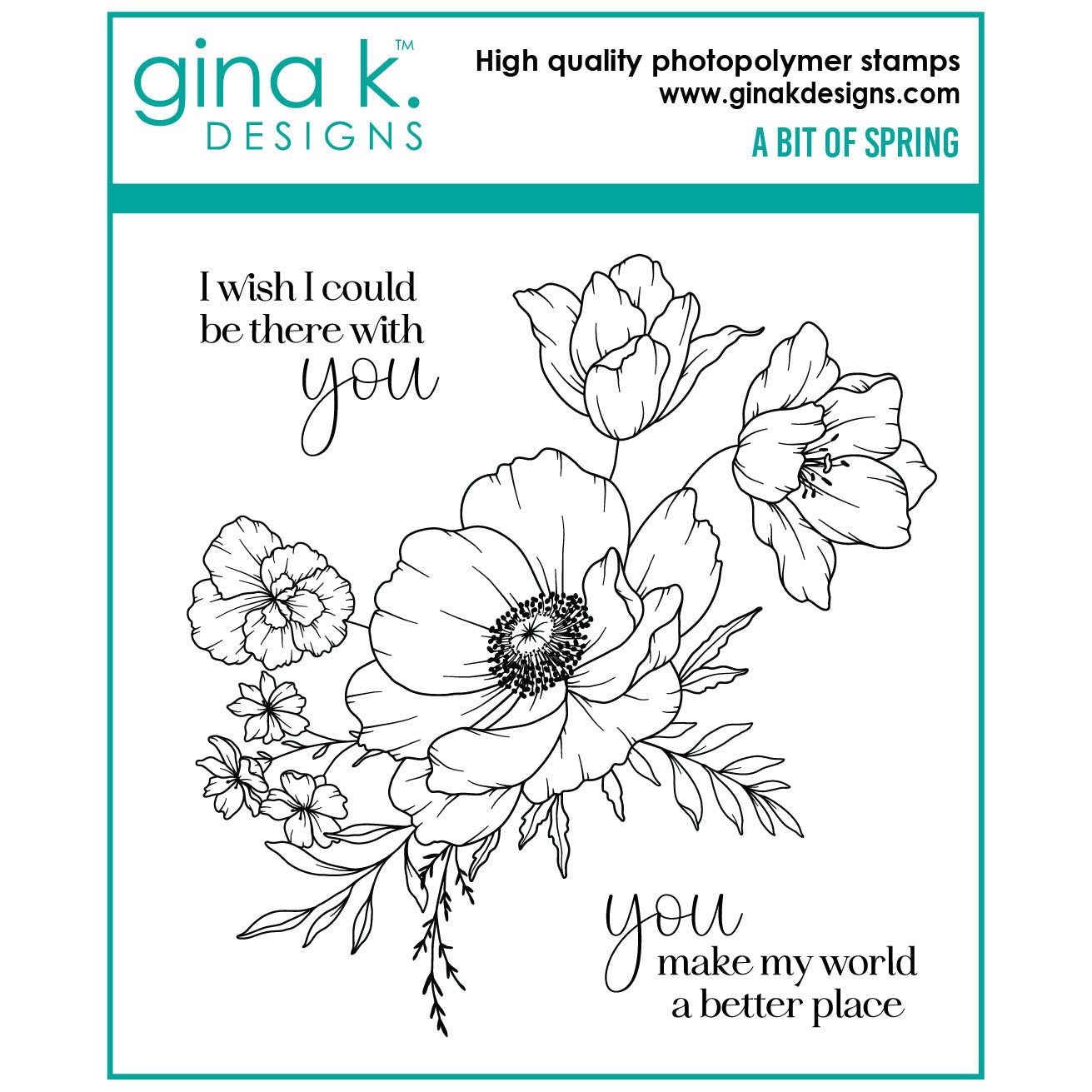 Effortlessly create stunning and intricate designs with Gina K Designs A Bit of Spring Stamps. This clear stamp set features a 4x4 inch floral arrangement, including a beautiful poppy flower, and two complementary sentiments. Perfect for all your crafting needs. Sentiments included: