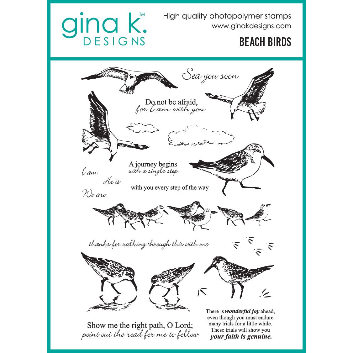 Capture the serene beauty of the shore with the Gina K Designs Beach Birds Stamps. This 6x8 inch clear stamp set features majestic and charming birds alongside heartfelt, faith-inspired sentiments. Perfect for adding a playful yet meaningful touch to your cards and crafts, it brings a peaceful beach vibe infused with uplifting messages. Let your creativity soar with these delightful stamps that celebrate nature and spirituality in harmony. Words and sentiments included: