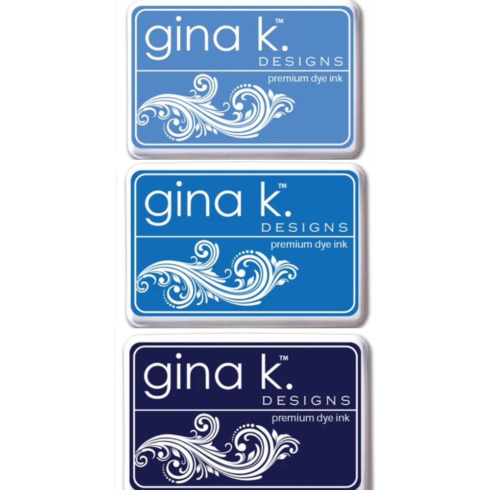 Indulge in luxurious stamping with Gina K Designs Blue Premium Dye Inks. Made for creative stampers, these acid-free and fade-resistant stamp pads dry quickly and permanently on most papers. The raised pad surface allows for seamless blending and works beautifully with watercolors and markers. Made in the USA, this set features one of Gina Krupsky's favorite color combination for layered stamps and stencils. Elevate your stamping experience today. This set includes one full size ink pad in each of the following colors: Powder Blue, Blue Raspberry and Blue Denim.