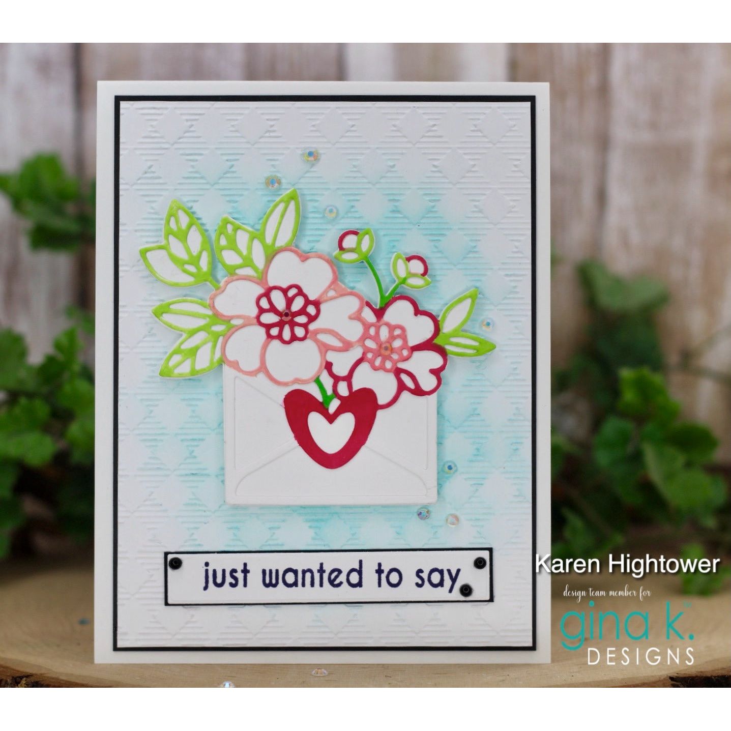 A stunning detail envelope with a burst of flowers coming out and shadow die to ground the image! Each die is approximately 3.5 x 3 inches.