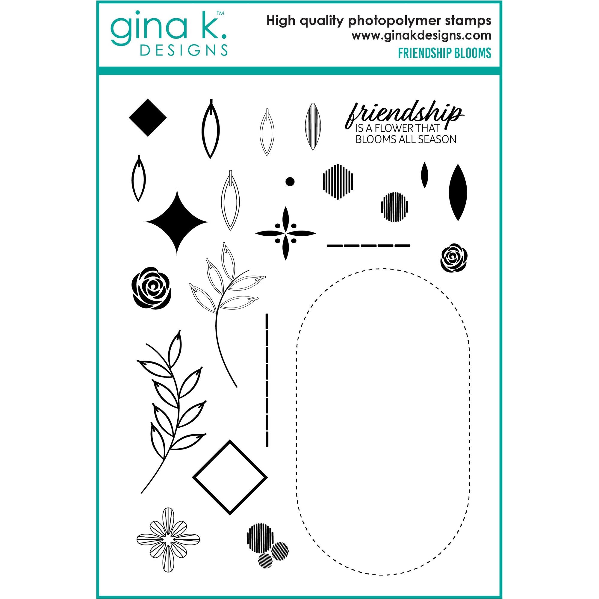 Gina K Designs' Friendship Blooms Clear Stamps and Dies Set is perfect for crafting projects. This 24-piece 6x8 inch set includes a wide range of geometric and floral elements, as well as a sentiment reading 'Friendship is a flower that blooms all season', to create your own unique and beautiful custom designs.