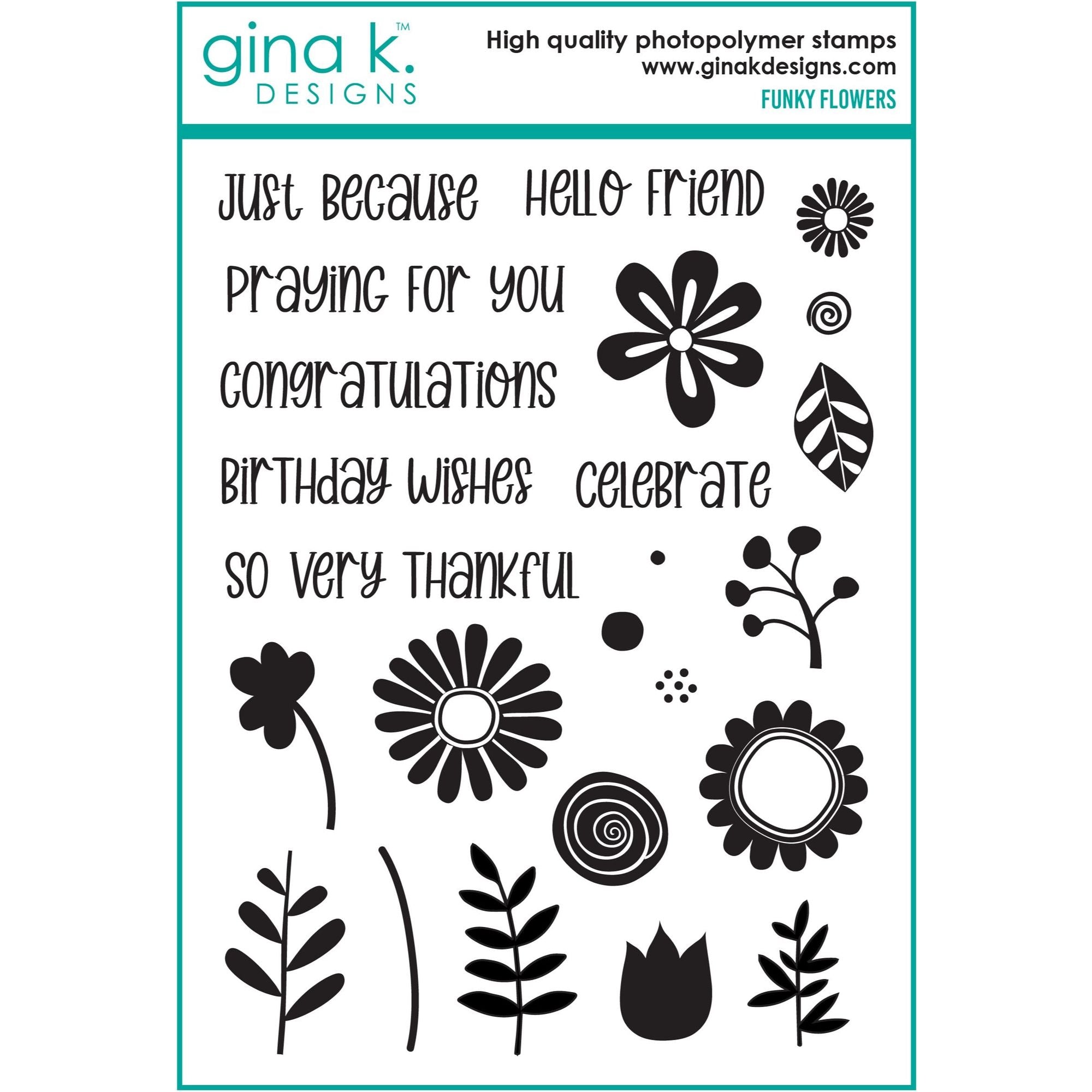 Gina K Designs Funky Flowers Clear Stamp and Die Bundle die0411*