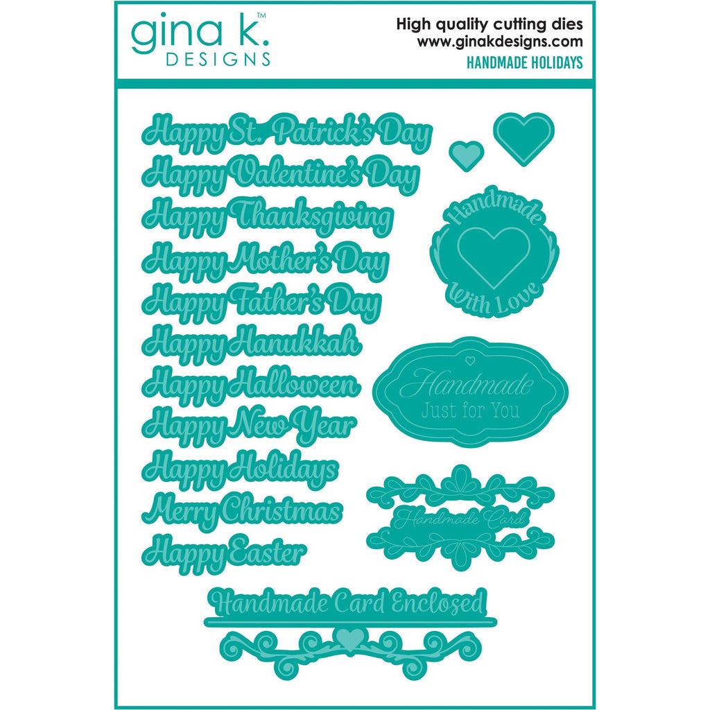 Make impressively precise die cuts every time with the Gina K Designs Handmade Holidays Coordinating Dies. Perfectly designed to die cut stamps from the Gina K Designs Handmade Holidays clear stamp set, these dies offer perfect cuts and exceptional accuracy. Enjoy amazing die cuts each time with this set. Please refer to coordinating stamp set for approximate dimensions.