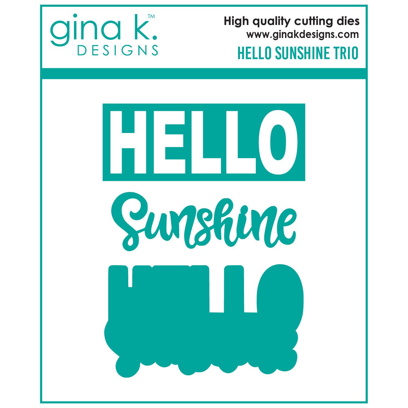 Spread some sunshine with the Gina K Designs Hello Sunshine Trio Dies. This set includes a versatile hello rectangle, a delicate sunshine text, and a beautiful silhouette. Perfect for creating quick and elegant cards to brighten someone's day. Measurements: Hello Rectangle (2.7 x 1 inch), Sunshine Text (2.5 x 0.8 inches), Silhouette (2.7 x 3.7 inches). Add a touch of luxury and sophistication to your crafting projects.