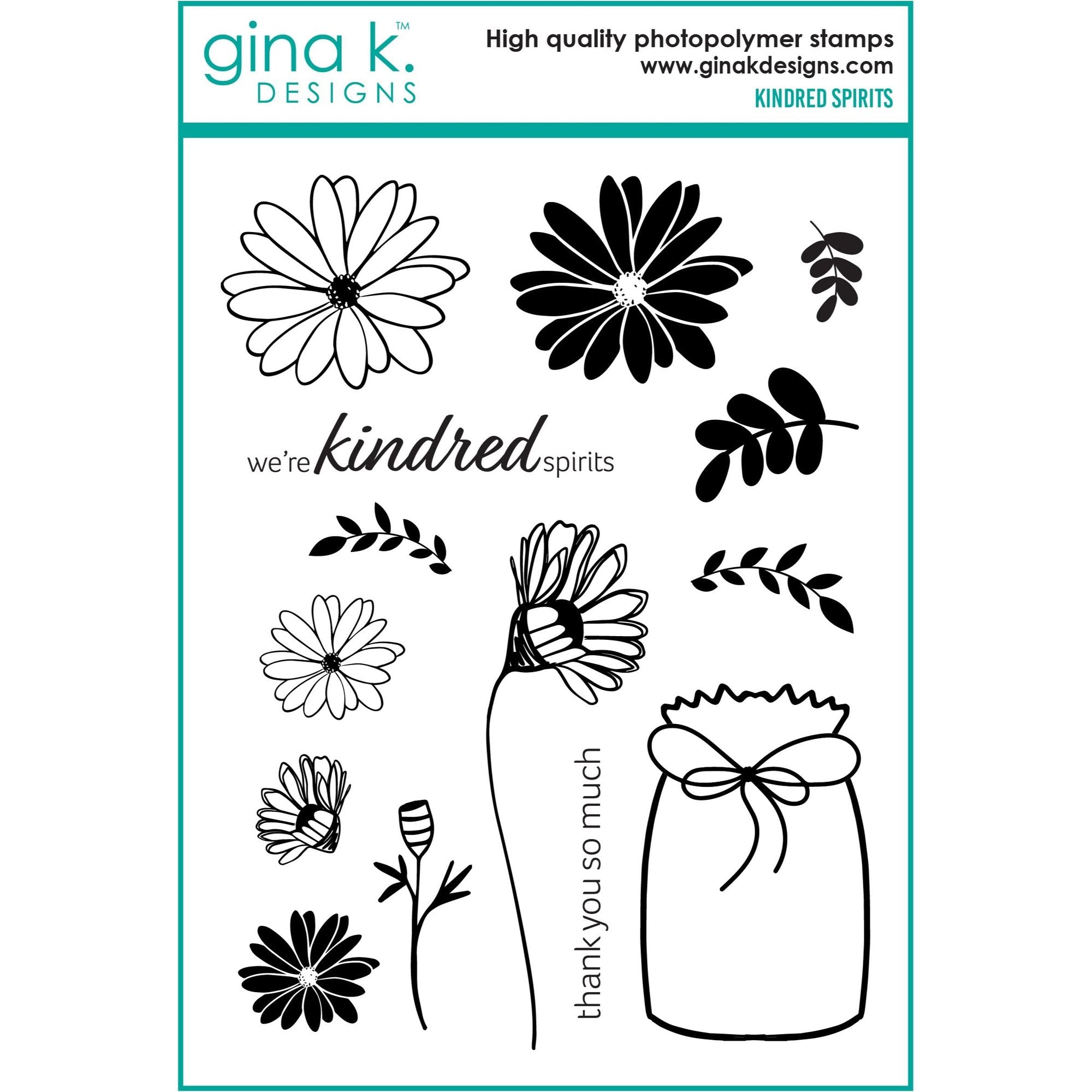 Create your own stunning bouquet with Gina K Designs Kindred Spirits Clear Stamp and Die Bundle. This 14-piece set includes silhouette and outline flowers, plus stems and foliage to customize your arrangement. Featuring a beautiful assortment, this 6x8 inch clear stamp set is perfect for adding a personal touch to any project. Coordinating dies for almost every stamp included for perfect results every time! Sentiments included: